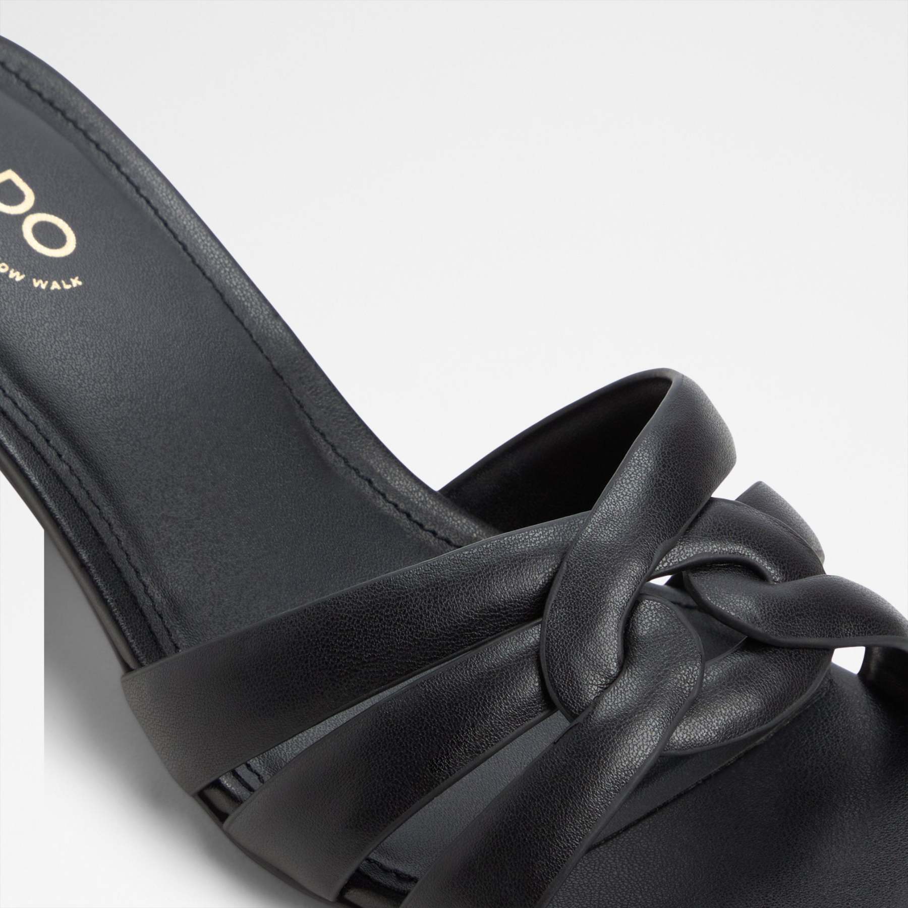#Style notes * #Details *Silhouette: Heeled Sandals *Toe Shape: Square *Heel Type: Block (Thick) *Closure Type: Slip Ons *Comfort Features: Pillowwalk+Flex *Colour: Black #Materials *Upper: Synthetic *Main: Synthetic *Sole: Rubber #Measurements *Heel Height: 1.75 In (4.45 Cm)