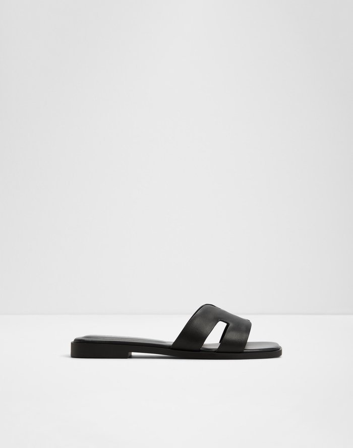#Style notes *Exude effortless elegance in these fine leather sandals, an easy staple for summertime dressing thanks to a sleek, minimalist silhouette. #Details *Silhouette: Flat Sandals *Toe Shape: Square *Heel Type: Flat Or No Heel *Closure Type: Slip Ons *Comfort Features: Pillowwalk+Flex *Colour: Black #Materials *Upper: 100% Sheep Grain Leather *Main: Leather *Sole: Thermo Plastic Rubber #Measurements *Heel Height: 0.50 In (1.27 Cm)