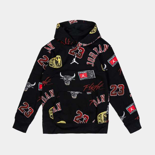 All Over Print Fleece Pullover Grade School Hoodie (Black/Red)