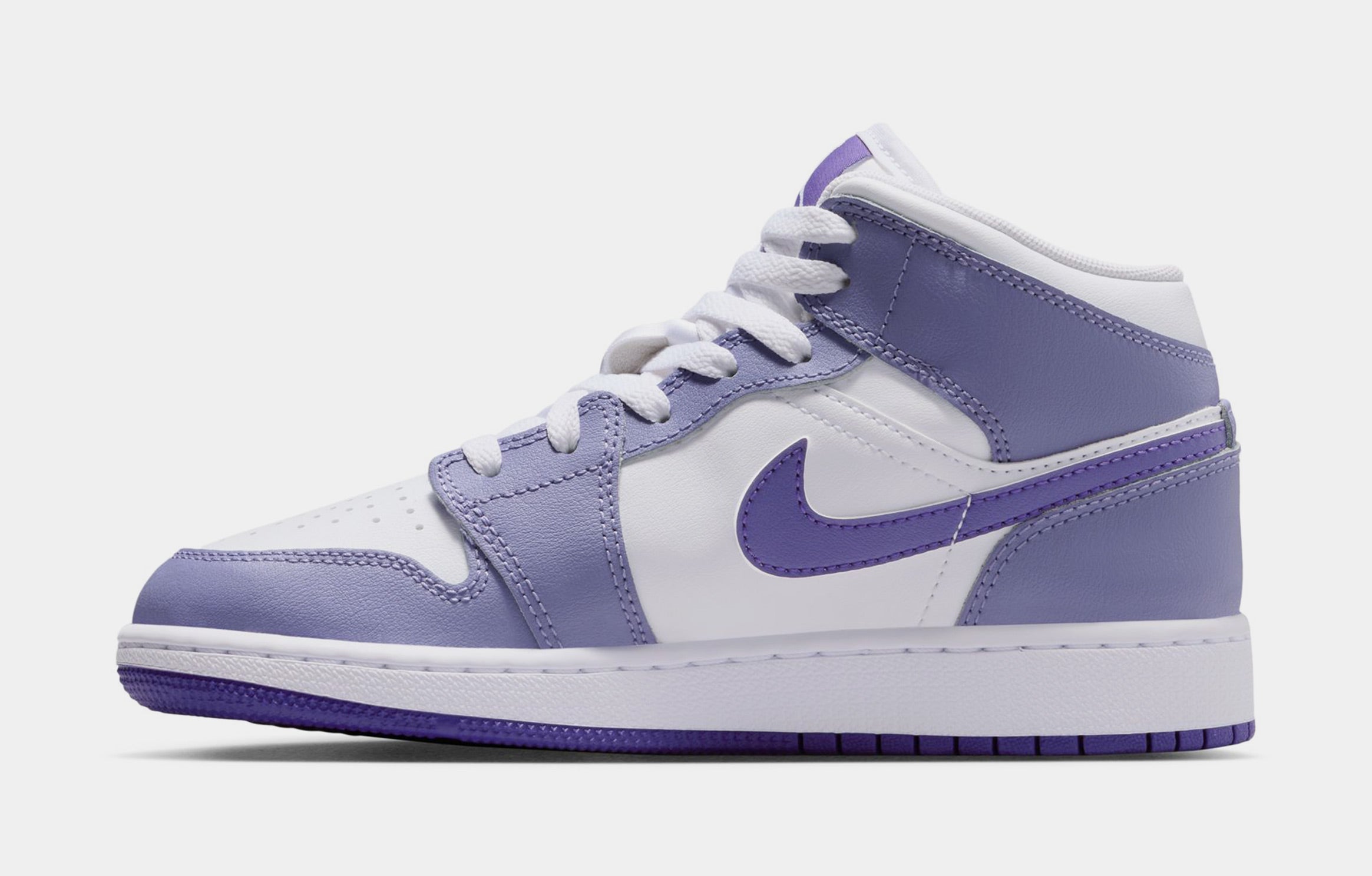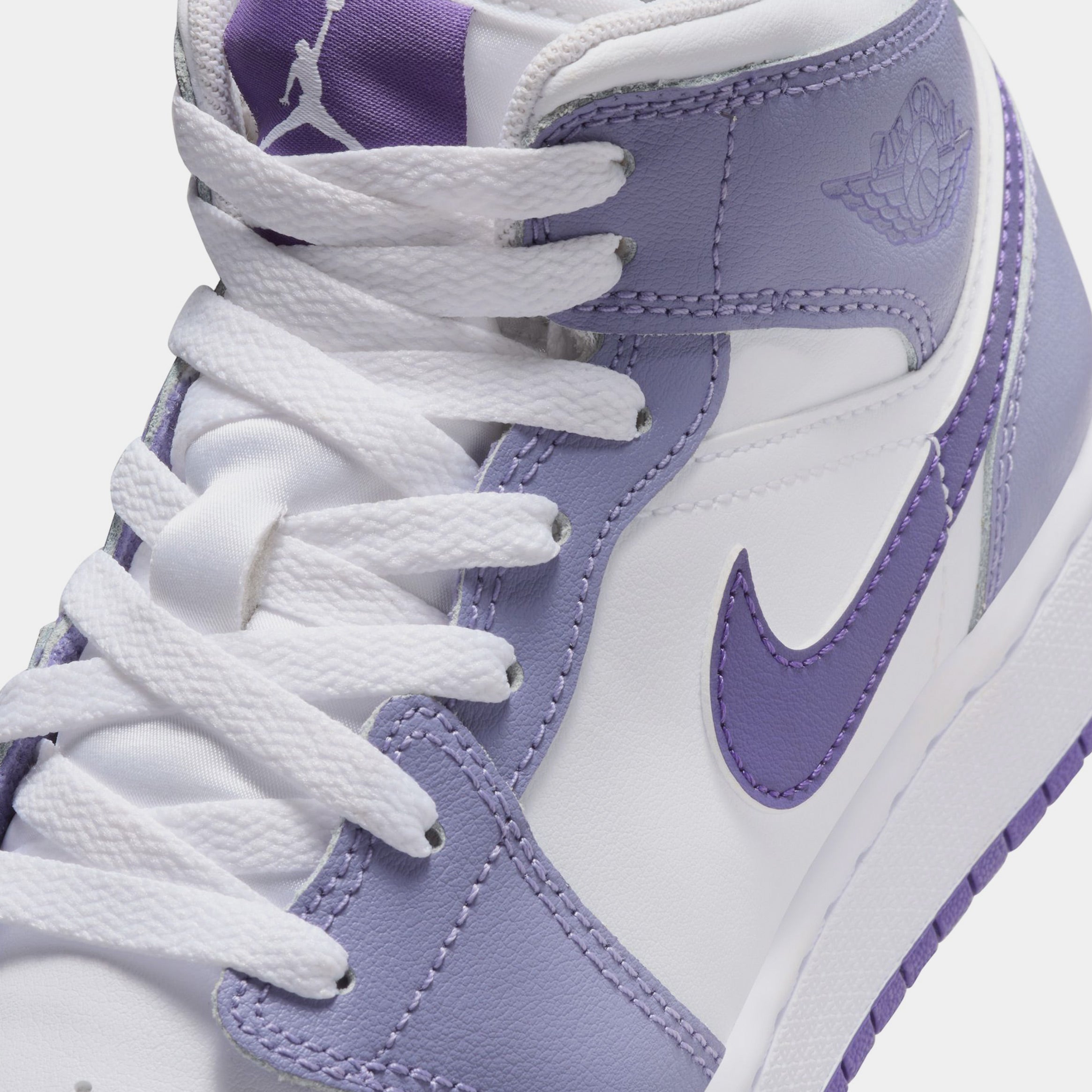 Air Jordan 1 Mid Grade School Lifestyle Shoes (Dusty Amethyst/White/Court Purple)