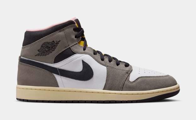 Air Jordan 1 Mid SE Cave Stone Mens Lifestyle Shoes (White/Cave Stone/Dark Sulfur/Oil Grey)