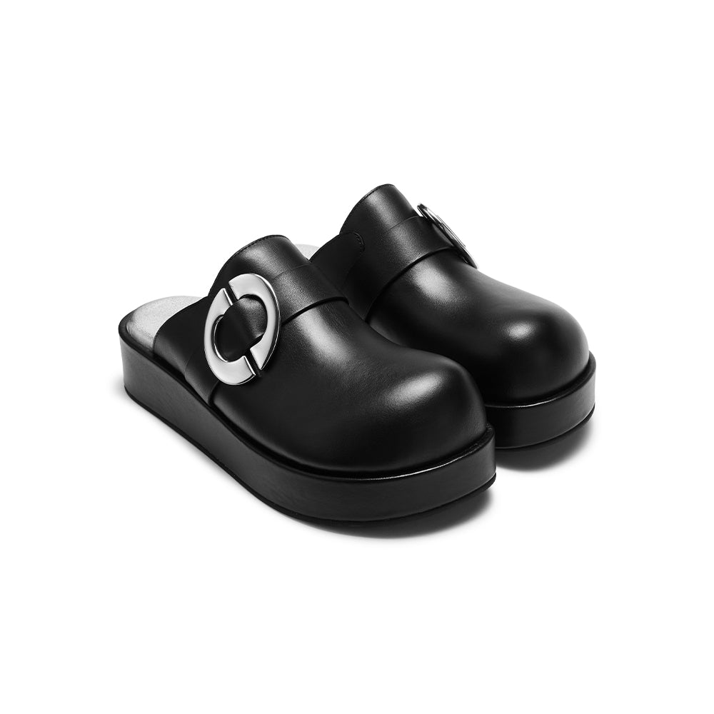 Lost In Echo Round Toe Thick Sole Mule Slipper Black