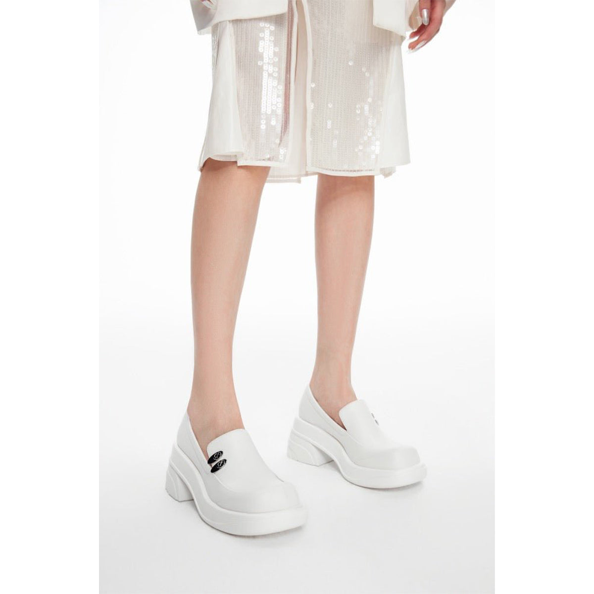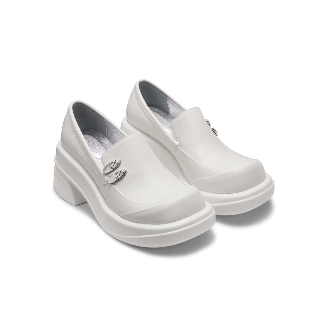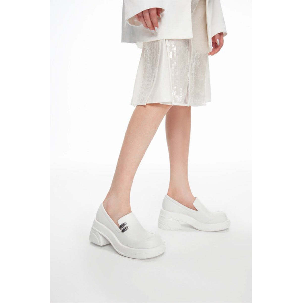 Lost In Echo Round Toe Thick-Soled Heel Leather Shoes White
