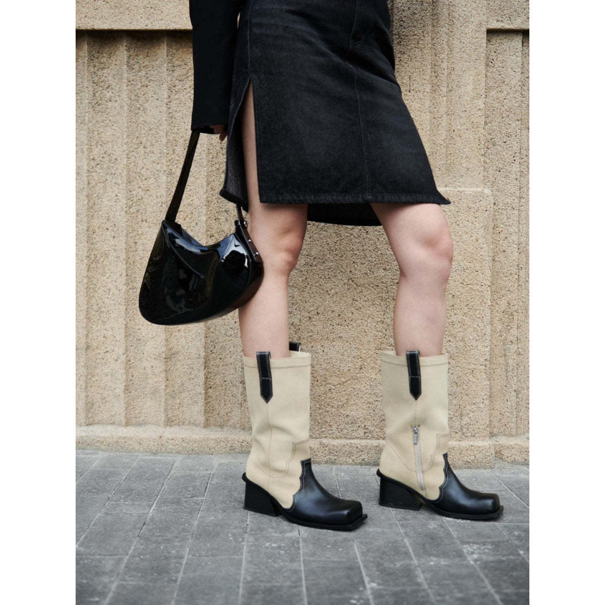 Lost In Echo Square Toe Zipper Heel Boots Sand