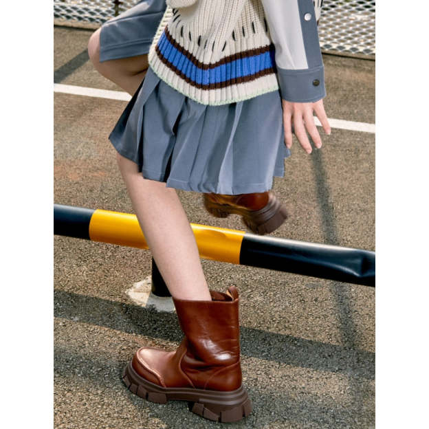 Lost In Echo Wide Heel Leather Boots Brown