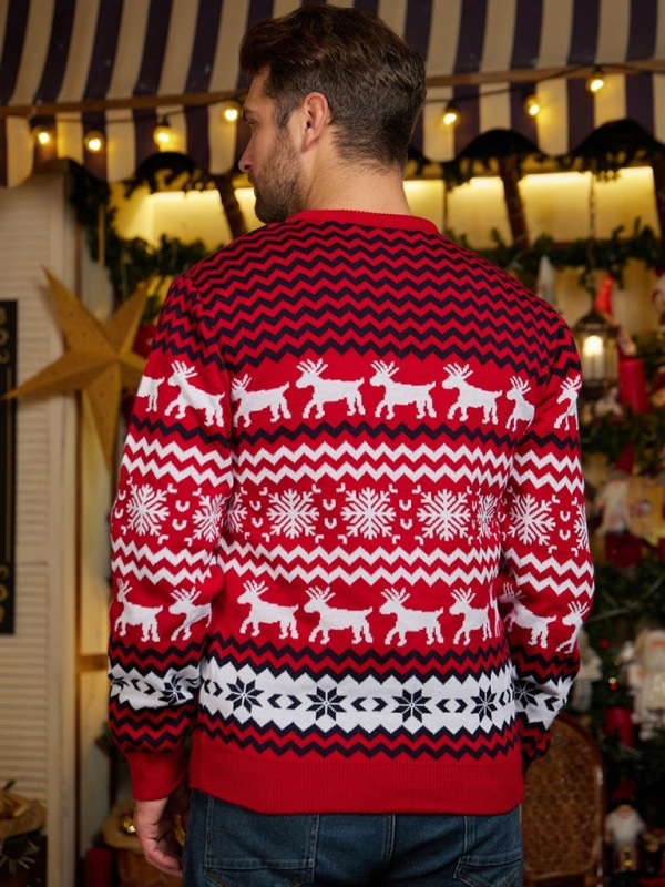 Men's Christmas Crew Neck Elk Jacquard Long Sleeve Sweater