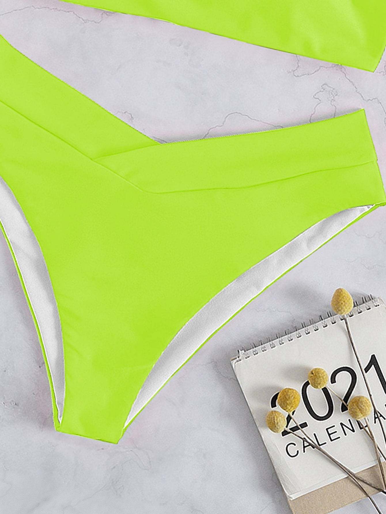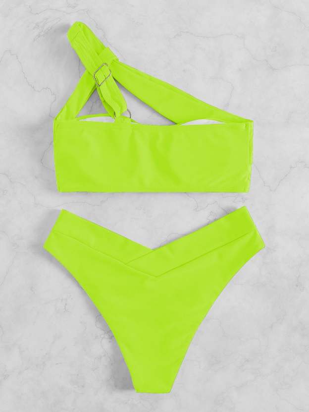 Neon Lime Green One Shoulder Bikini Swimsuit