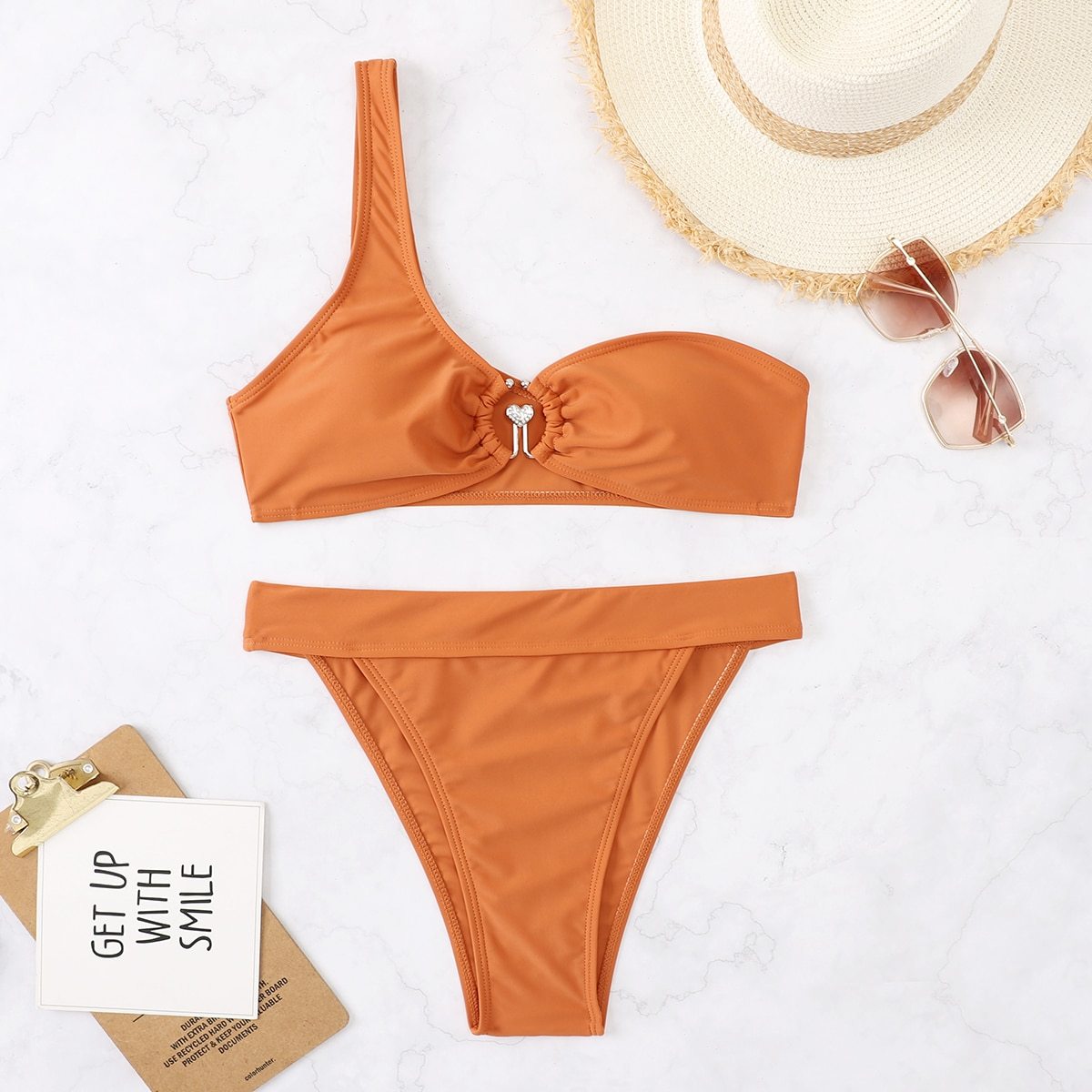 One-shoulder tummy bikini two-piece set