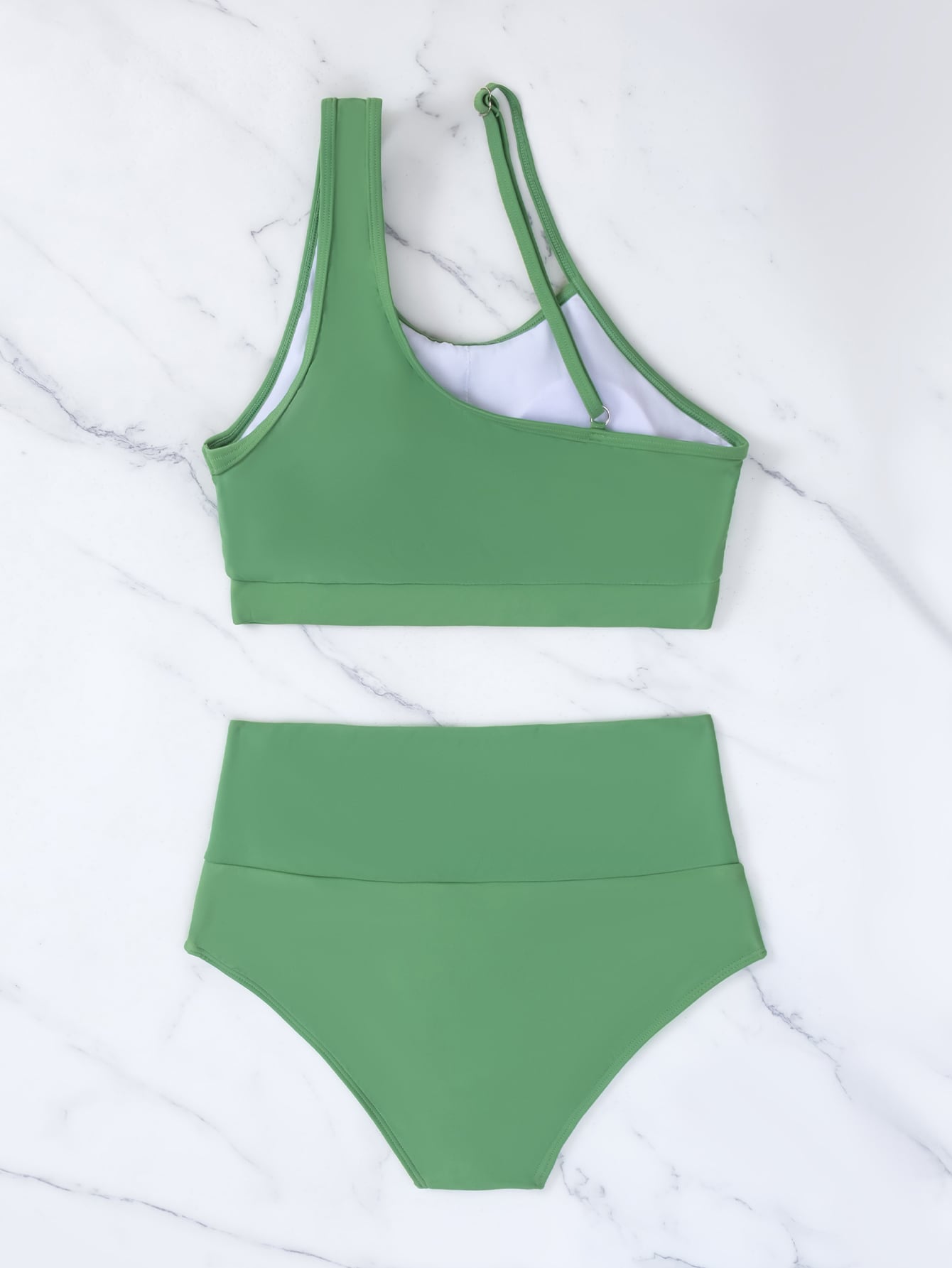 Plain Asymmetrical Cut-out Bikini Swimsuit