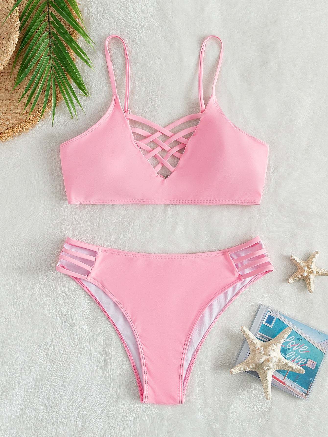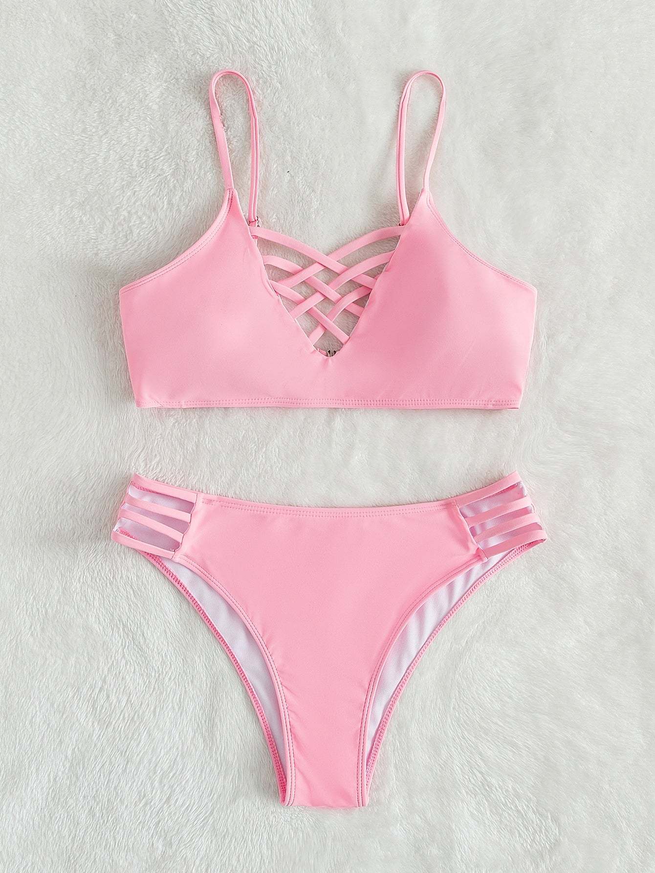 Plain Cross Bikini Swimsuit