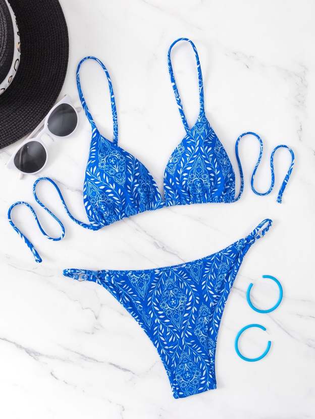 Plant Print Triangle Bikini Swimsuit