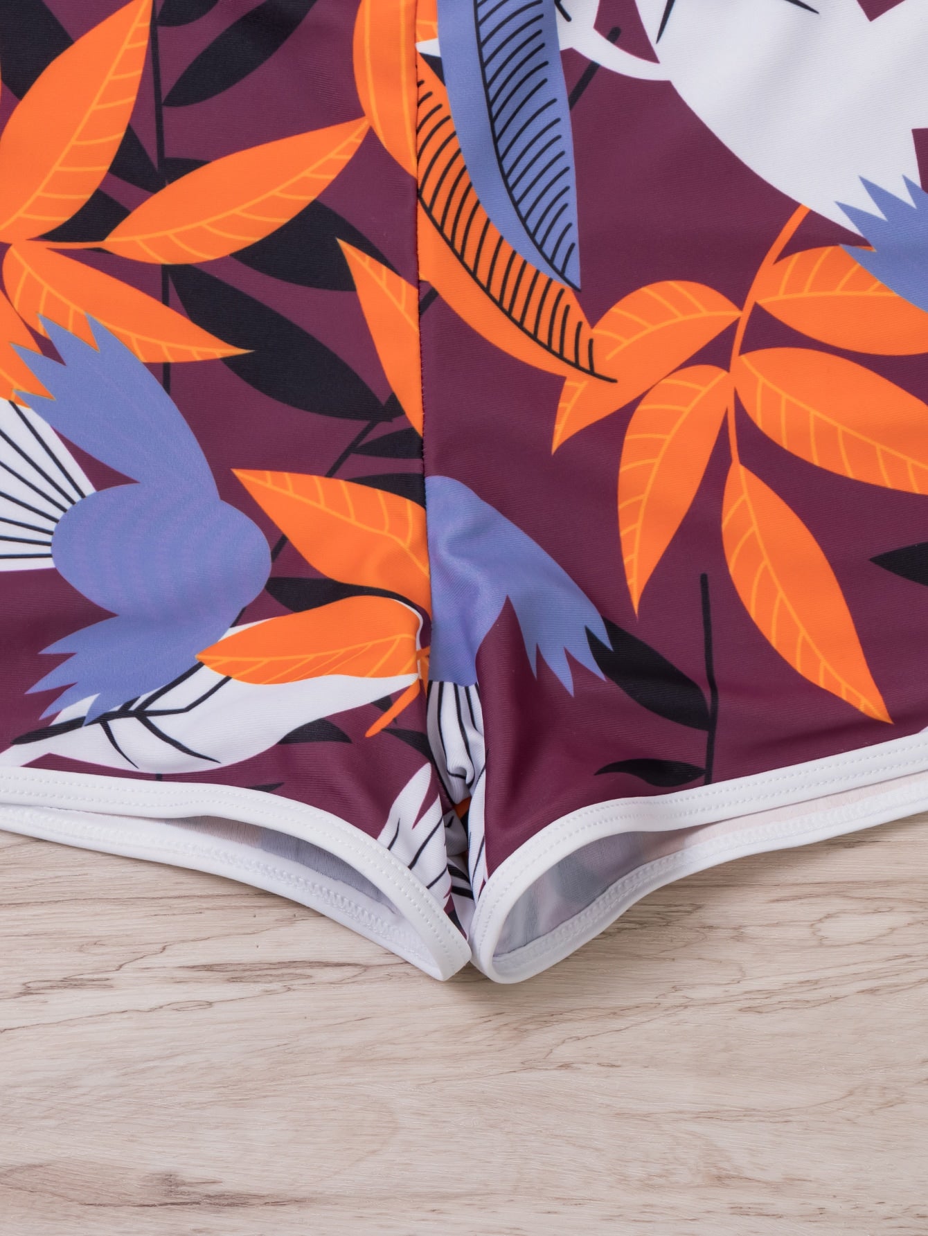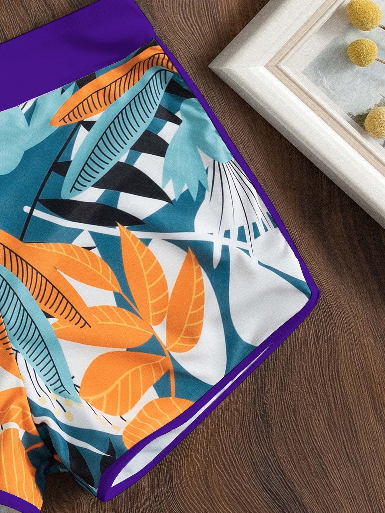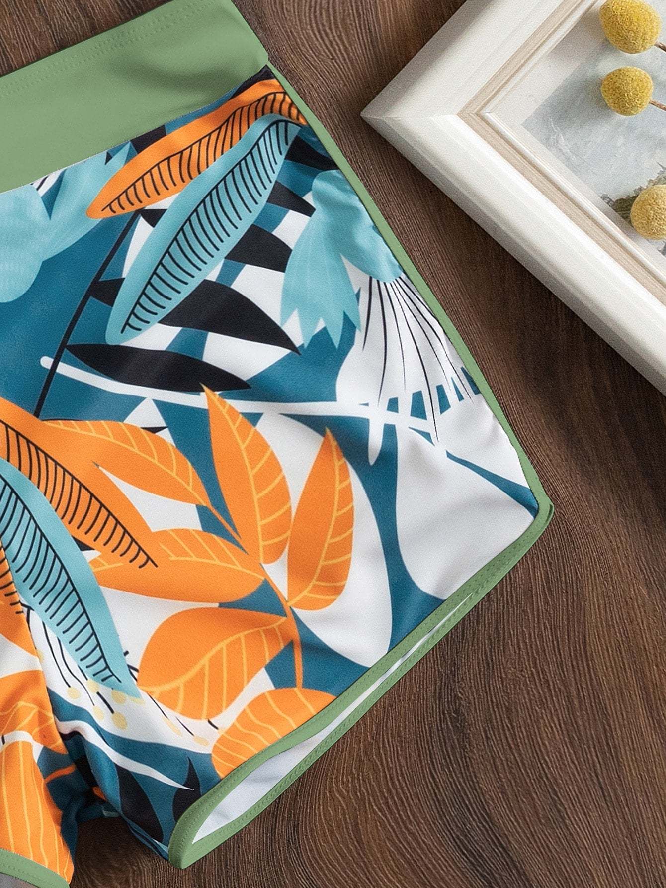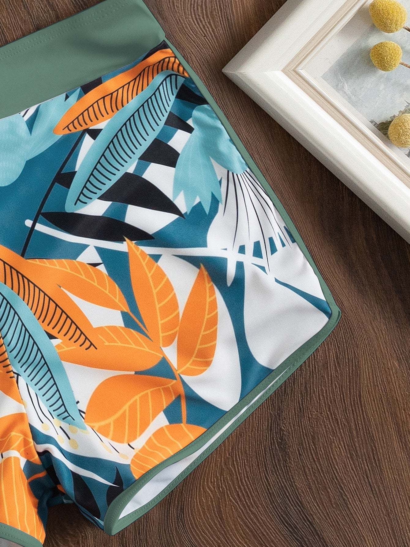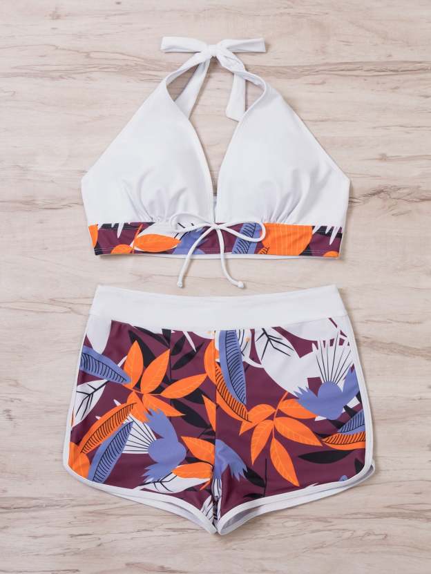 Random Leaf Print Tie Front Halter Bikini Swimsuit