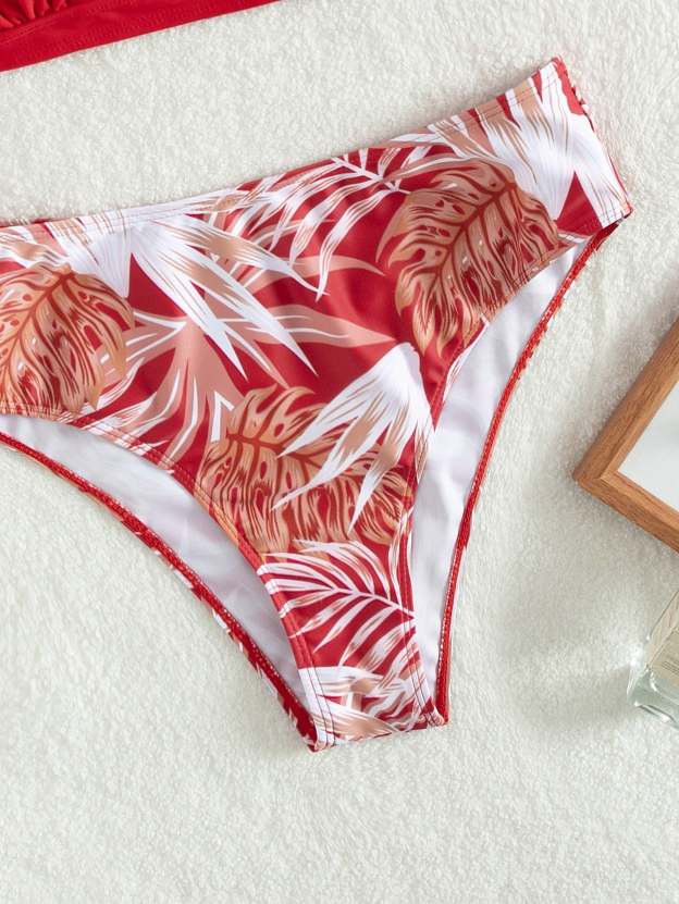 Random Tropical Print Tie Back Halter Bikini Swimsuit