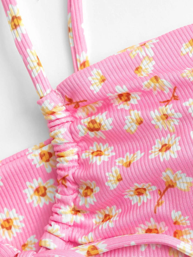 Ribbed Ditsy Print Tied Loincloth Bikini Swimwear