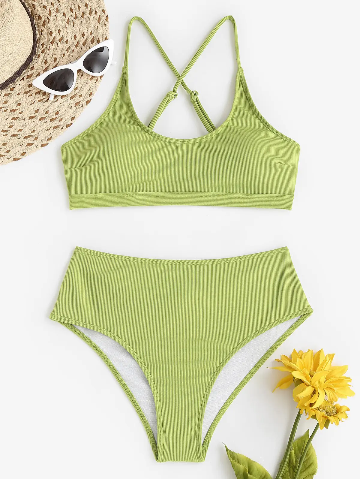 Ruched Scrunch Butt Ribbed Criss Cross Tankini Swimwear