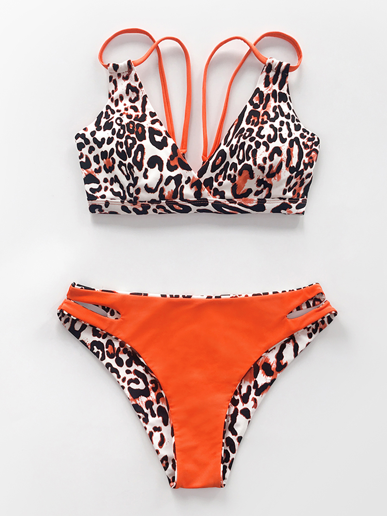 Sexy Orange Leopard Strappy Bikinis Set