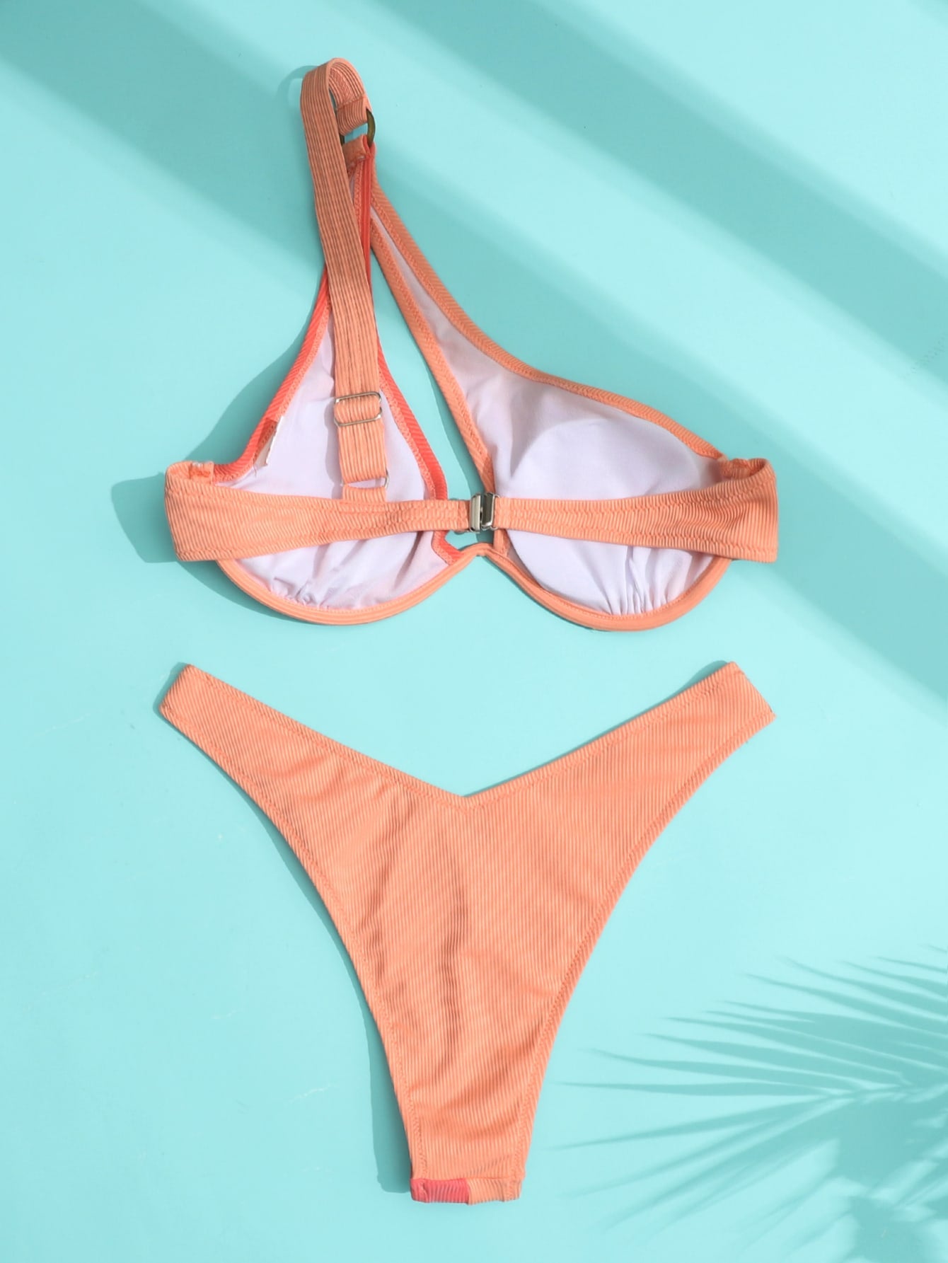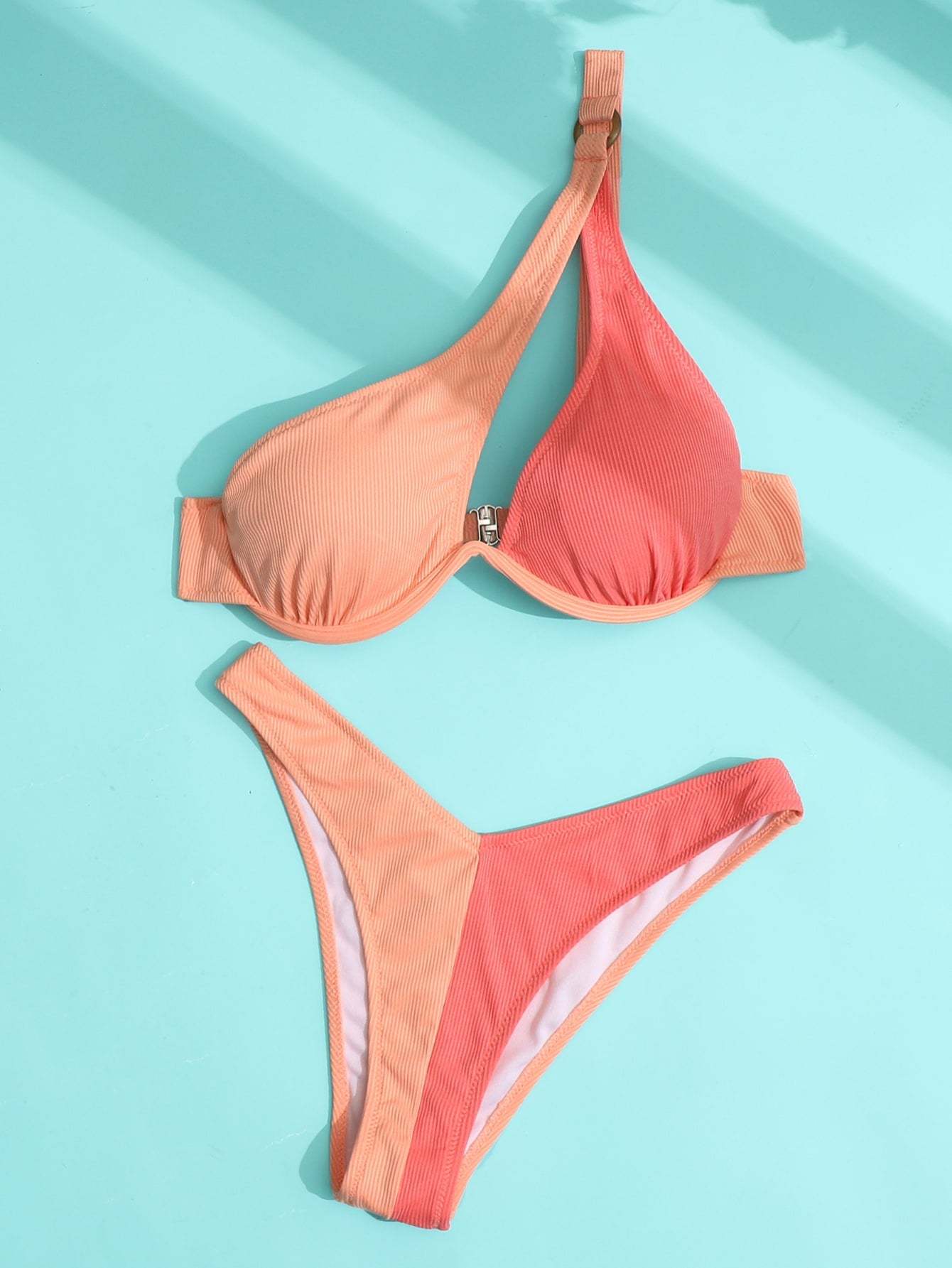 Leisure Two Tone Cut Out One Shoulder Underwire Bikini Swimsuit