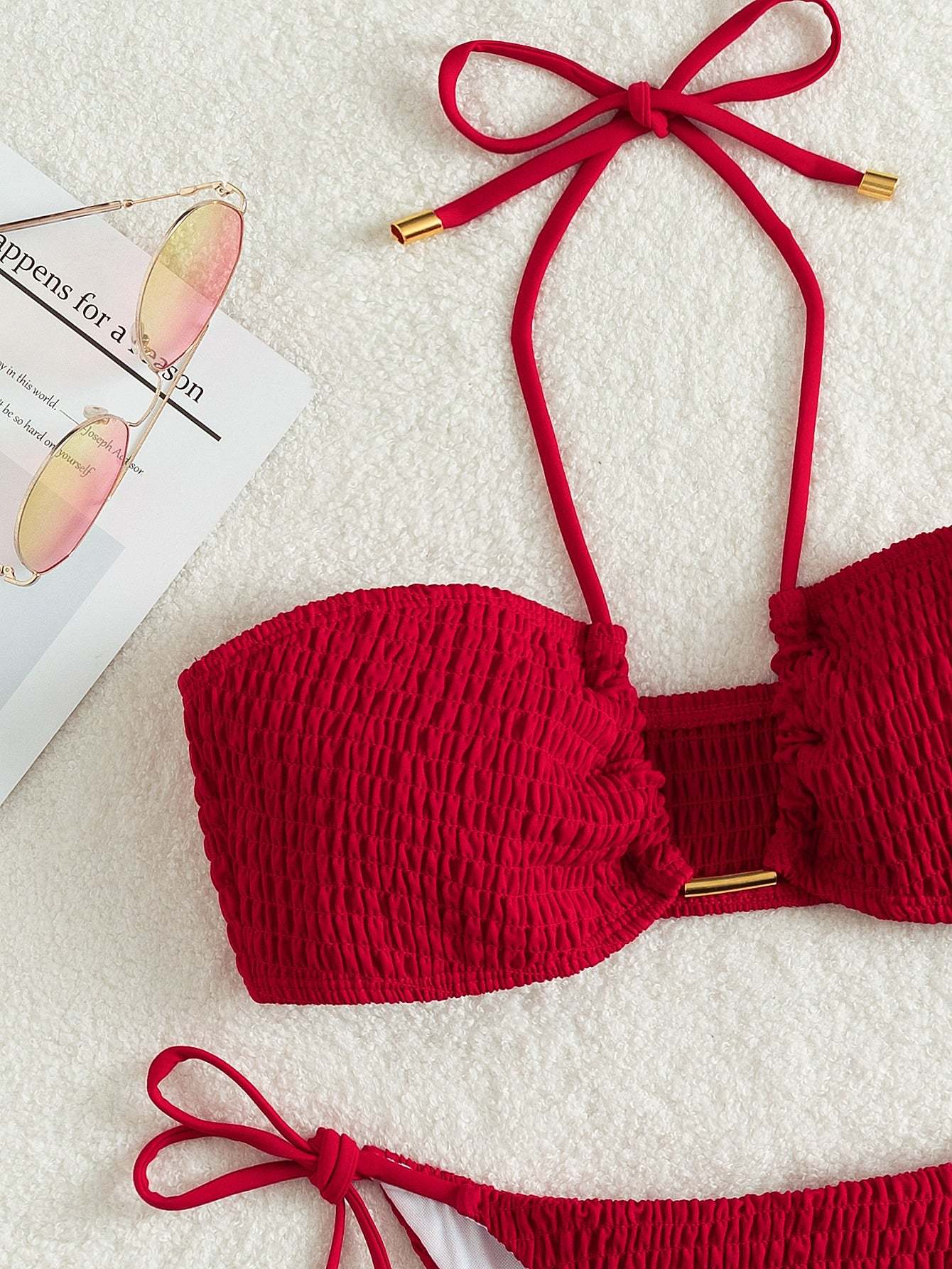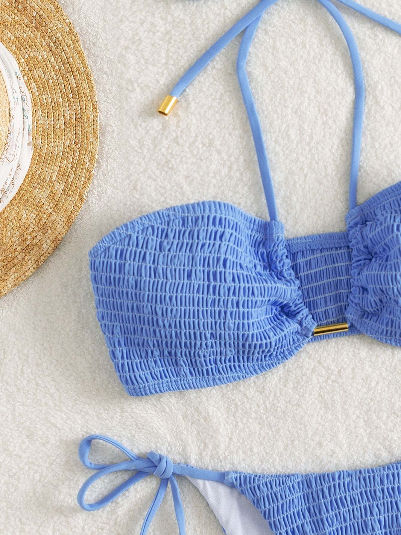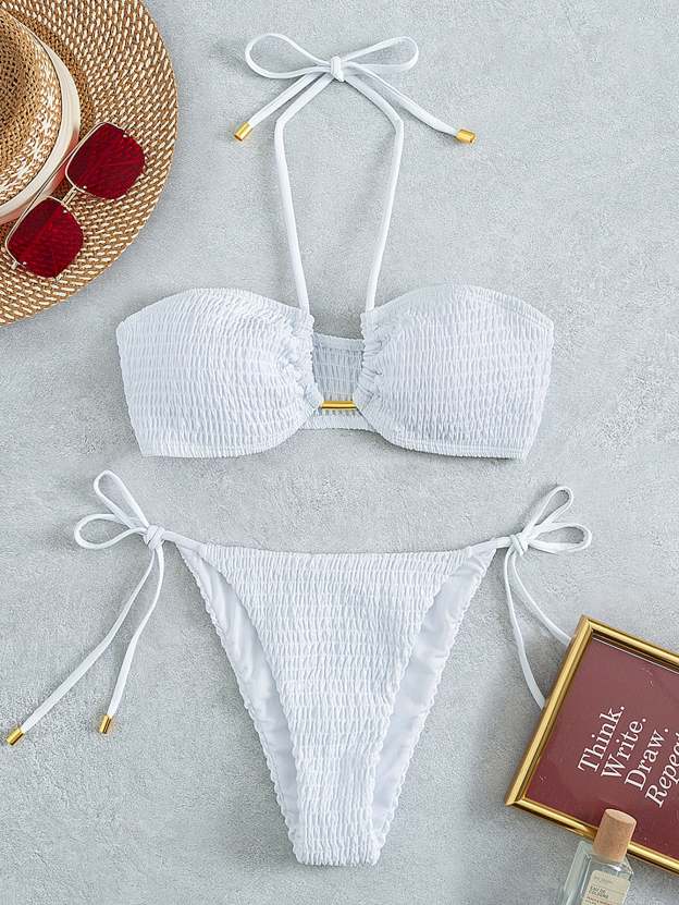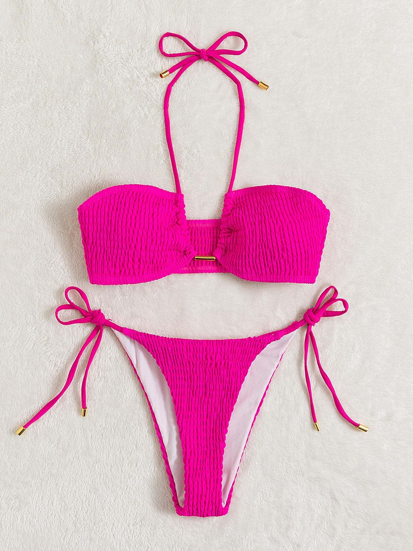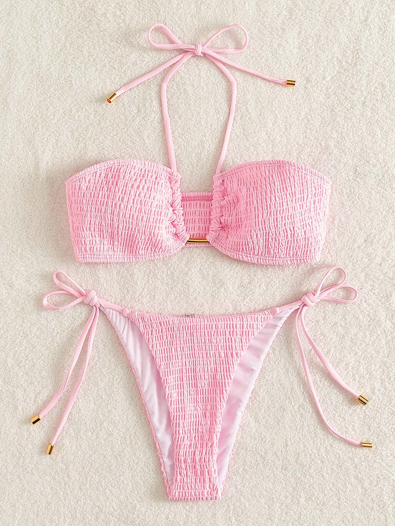Smocked Tie Side Bikini Swimsuit
