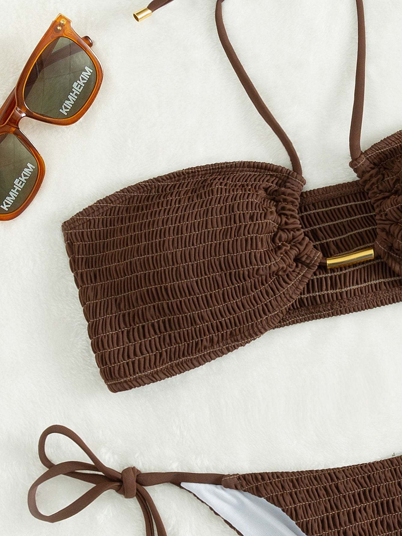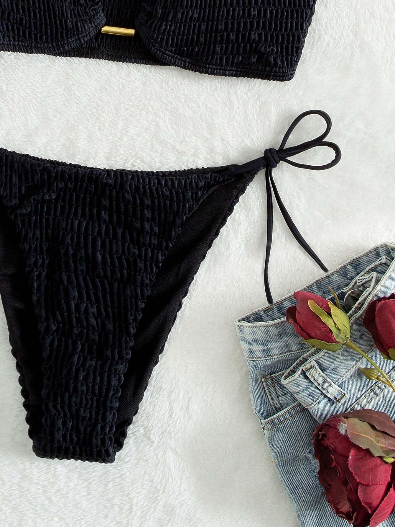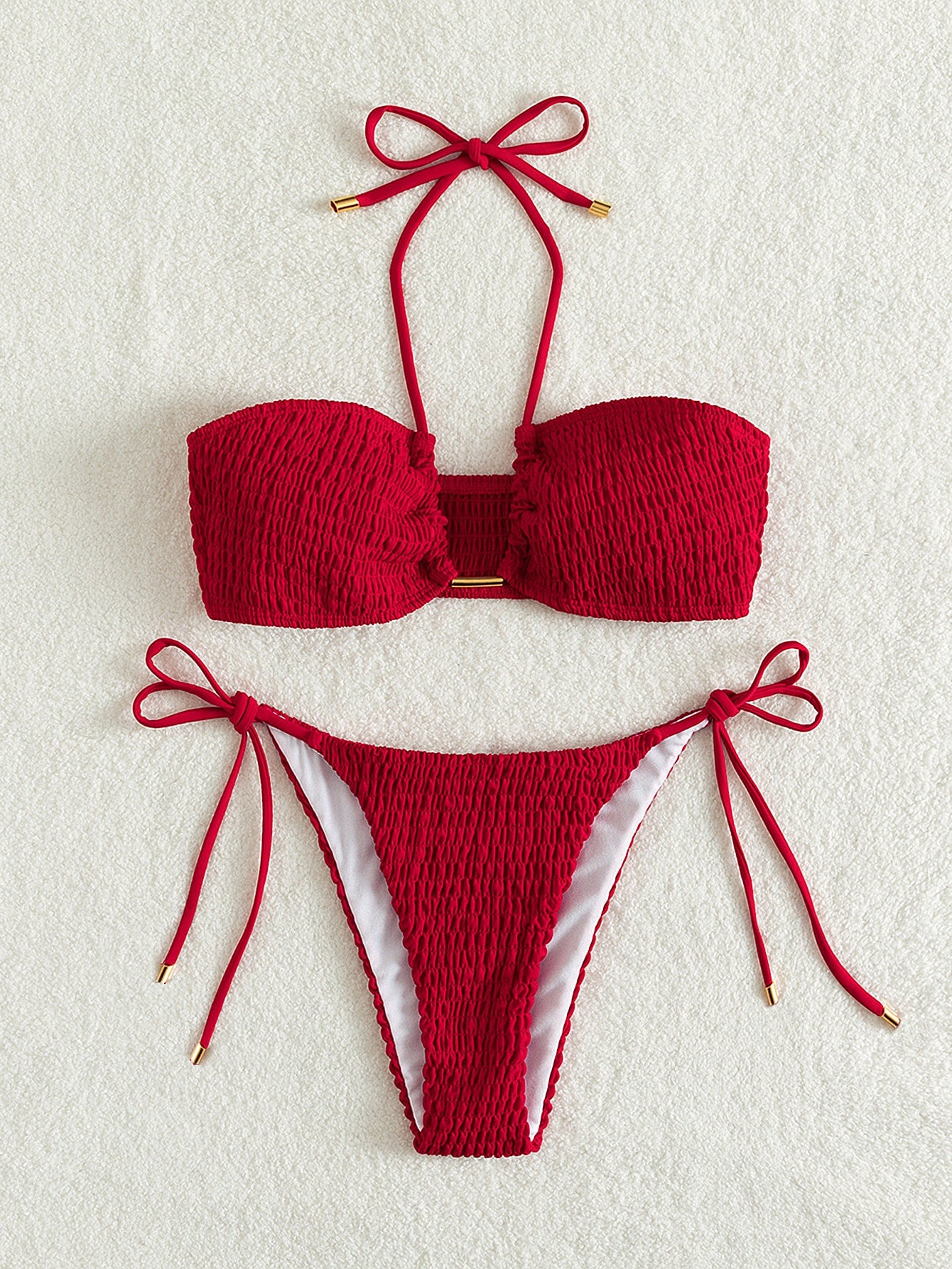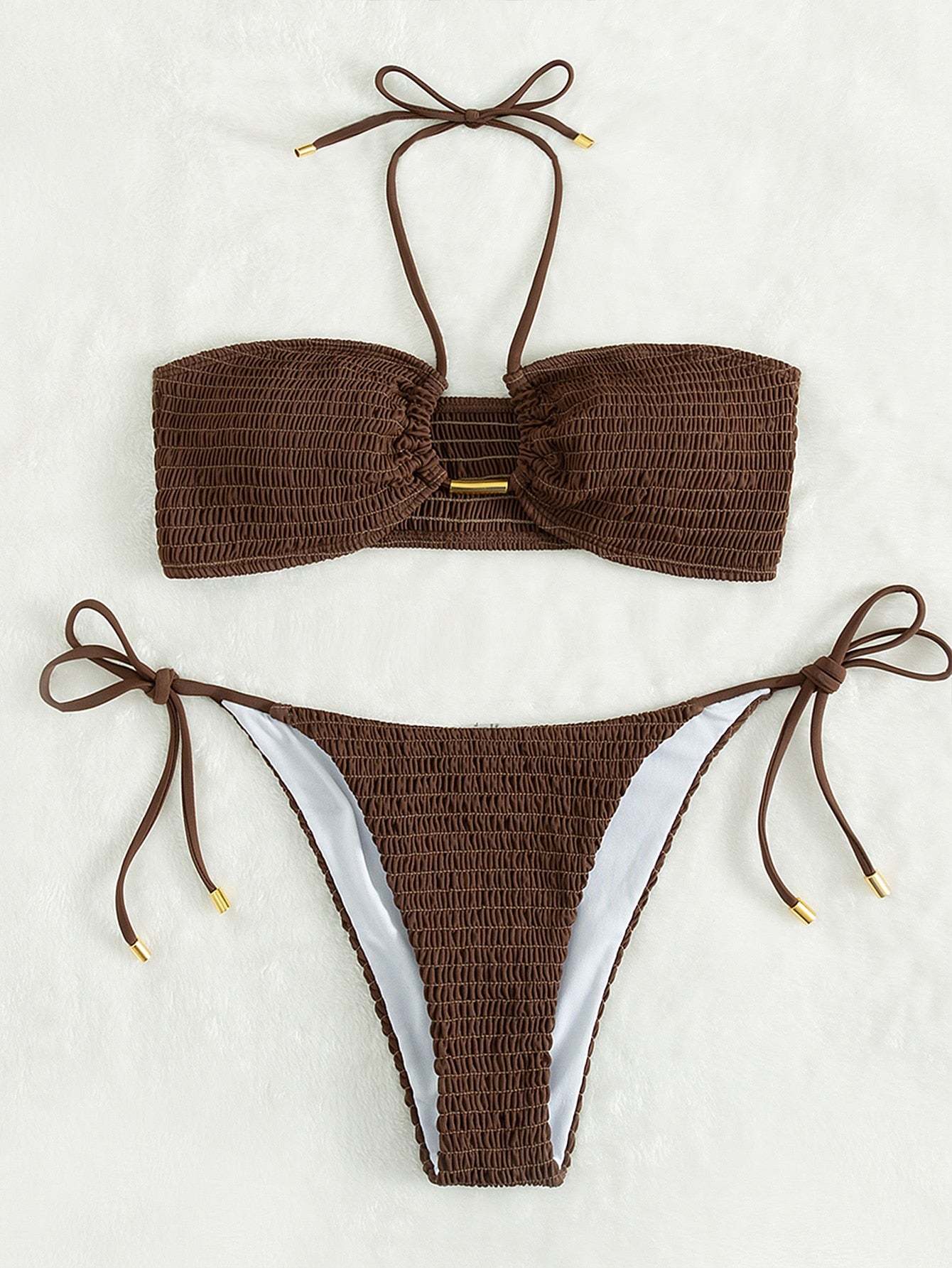 Smocked Tie Side Bikini Swimsuit