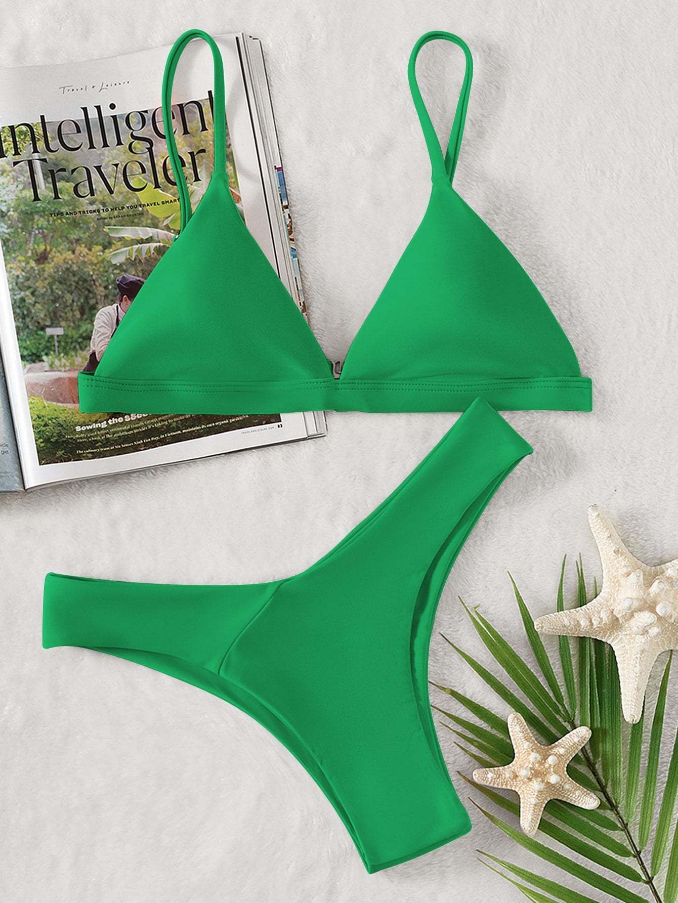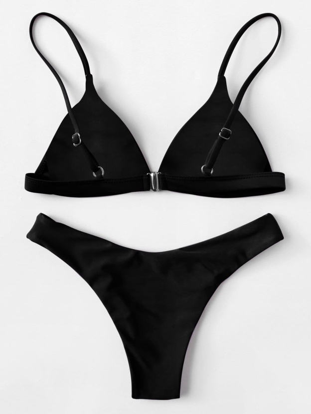 Solid Triangle High Cut Bikini Swimsuit
