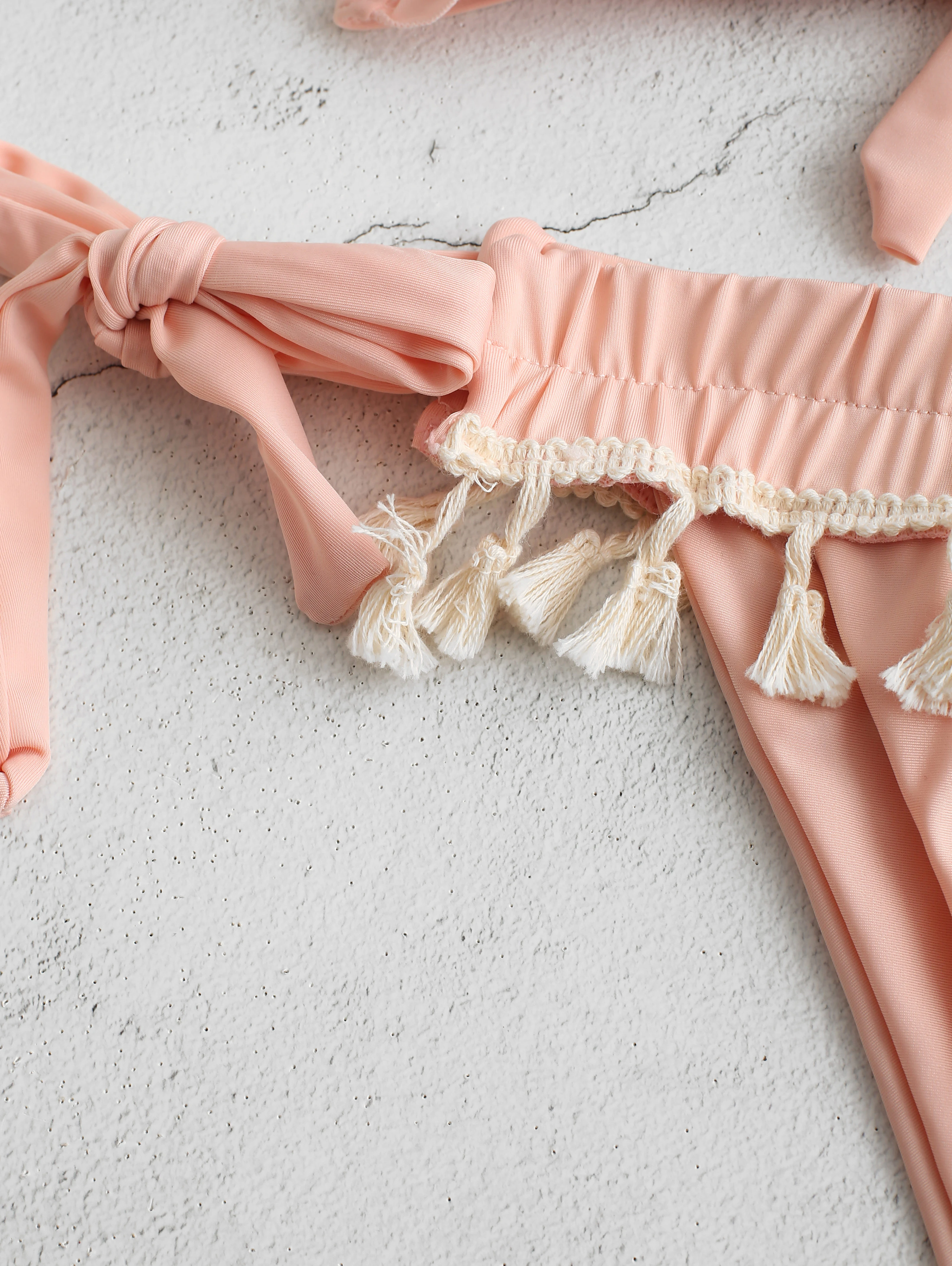 Strapless Ruffled Trim Lace-up High Waisted Bikini