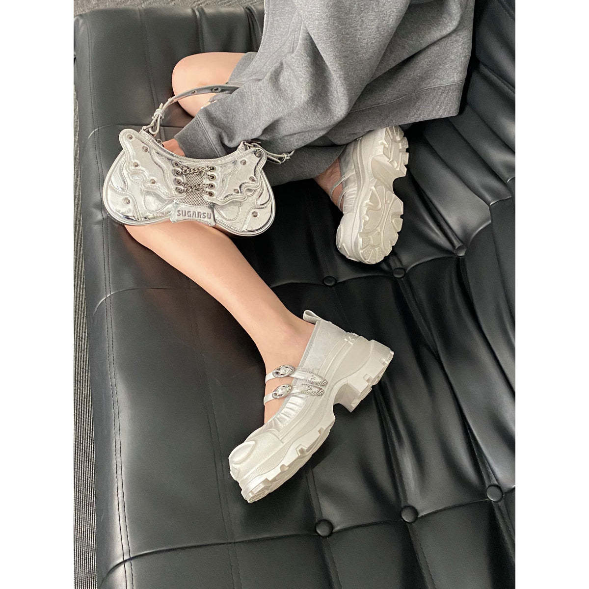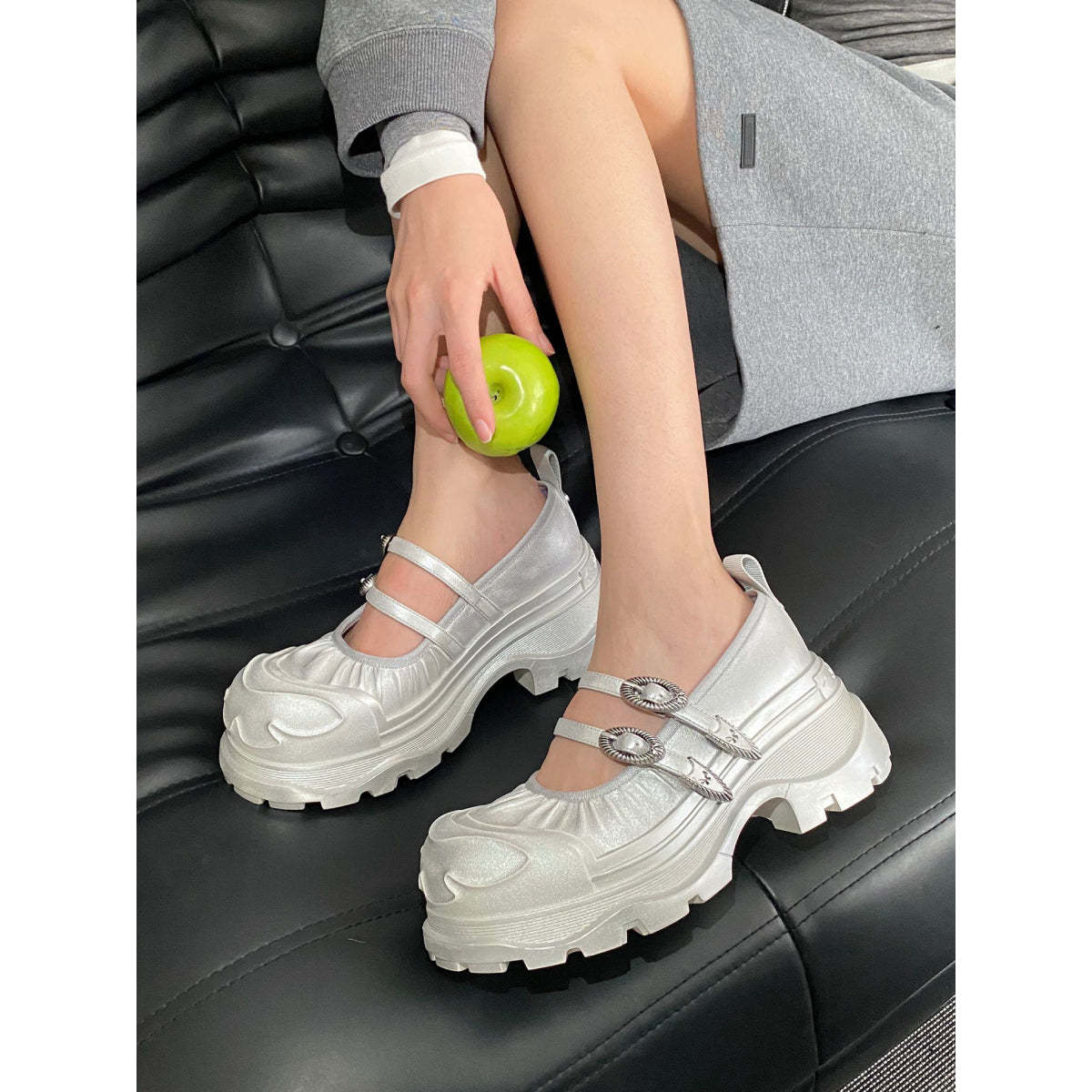 SugarSu Butterfly Sole Double Buckle Mary Jane Sliver