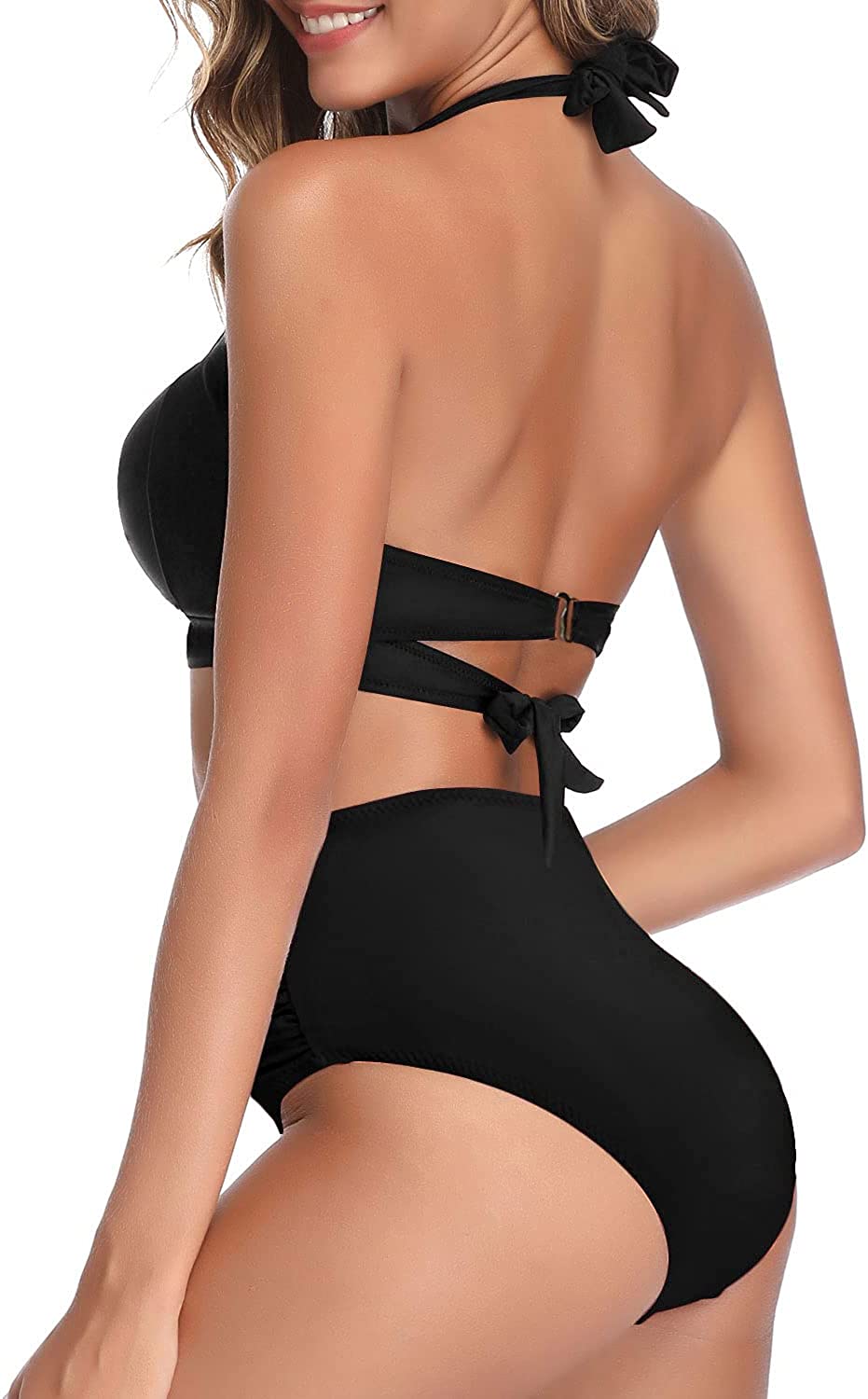 Tempt Me Women Vintage Swimsuit Two Piece Retro Halter Ruched High Waist BikiniVintage Two Piece Retro Halter topruched High Waist BikiniEnough coverage