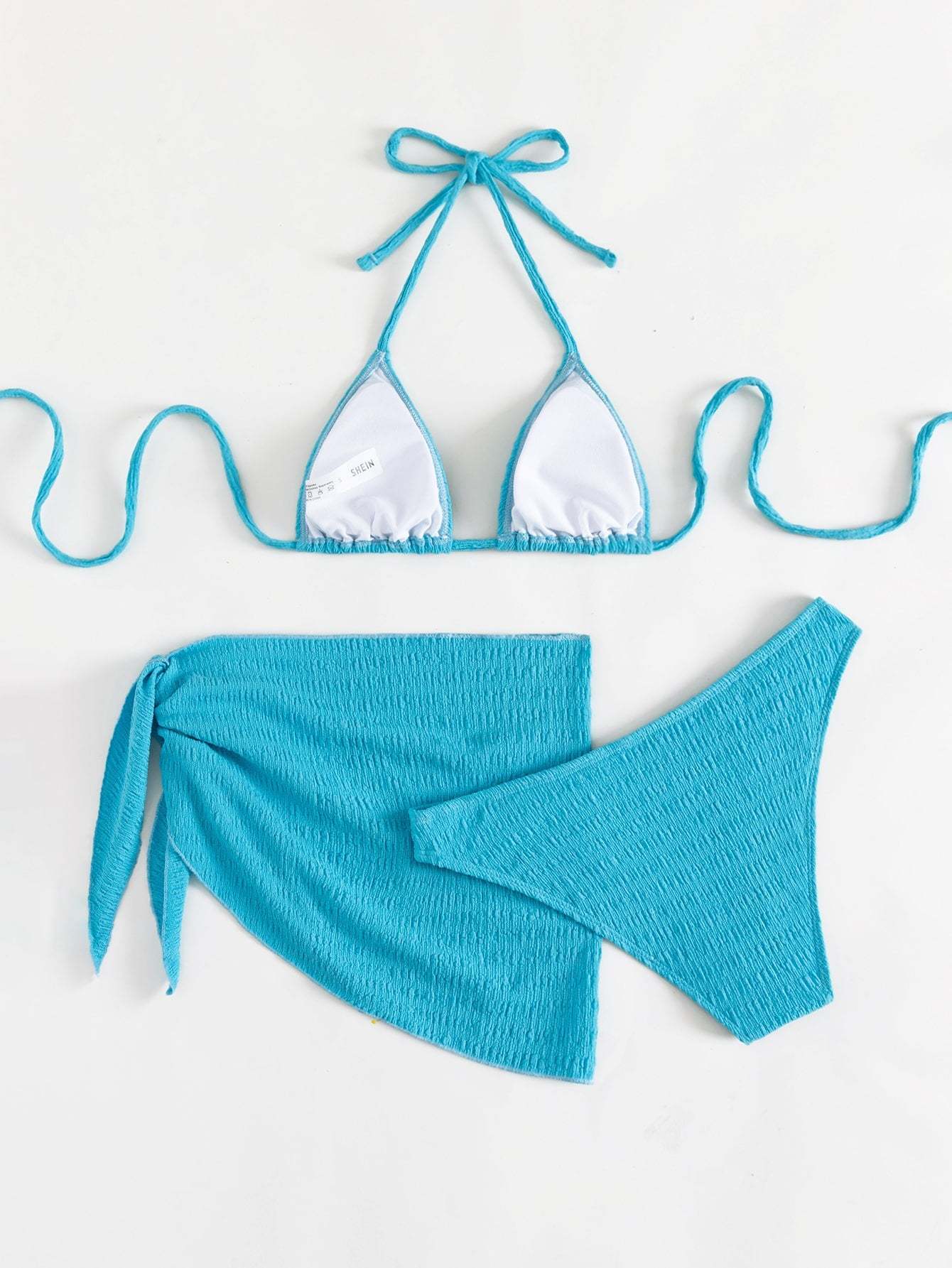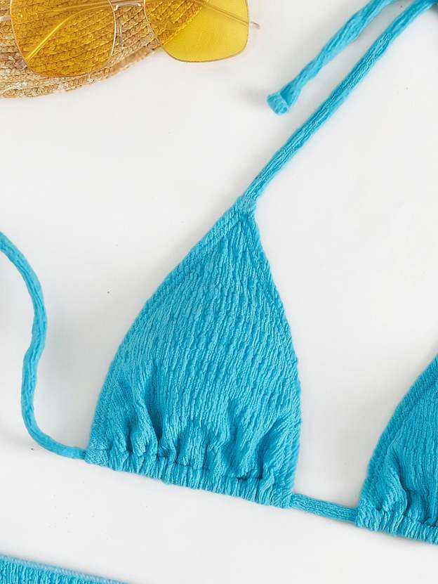 Textured Halter Triangle Bikini Swimsuit With Beach Skirt
