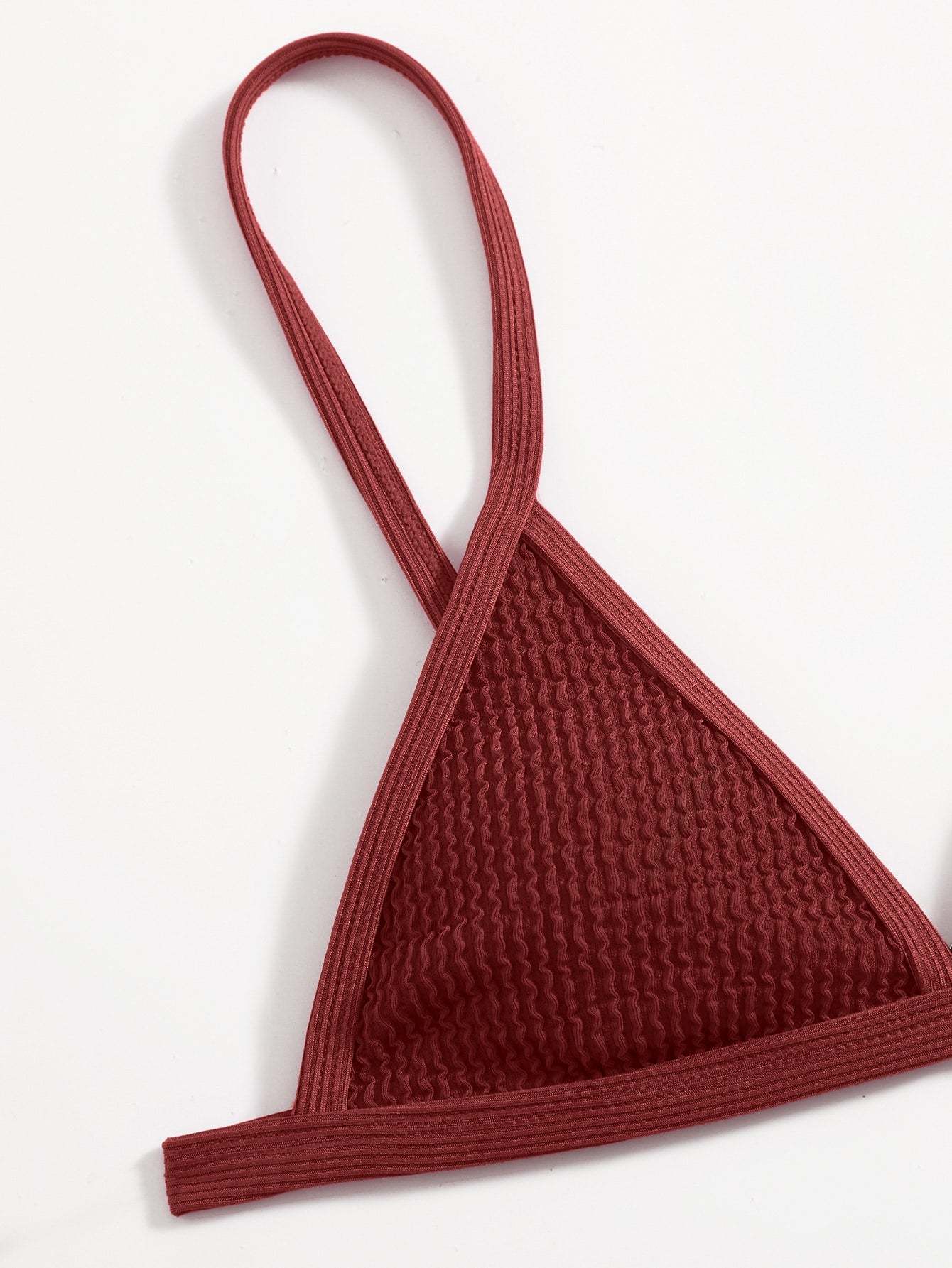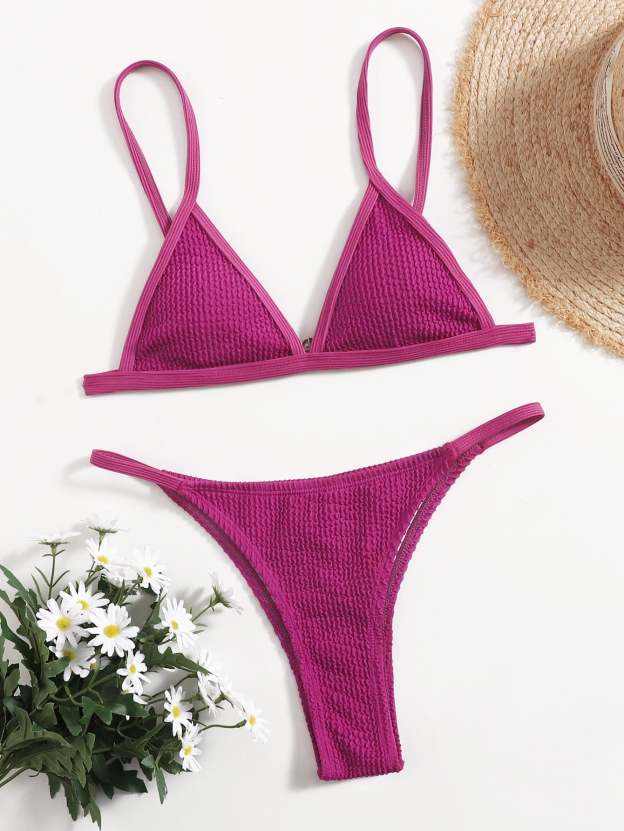 Textured V Neck Triangle Bikini Swimsuit