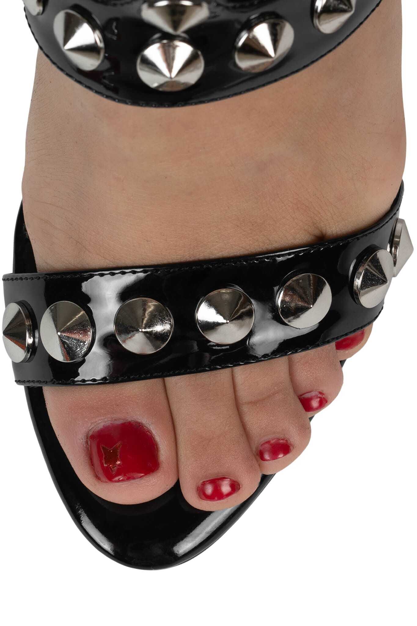 Gladiator heeled sandal with spike and o-ring detail