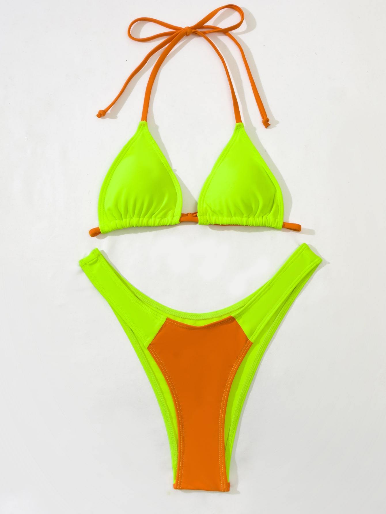 triangle bag halterneck split bikini set