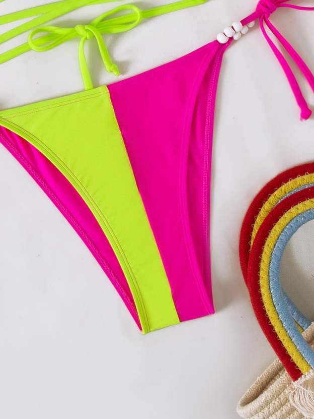 Two Tone Crisscross Micro Triangle Tie Side Bikini Swimsuit
