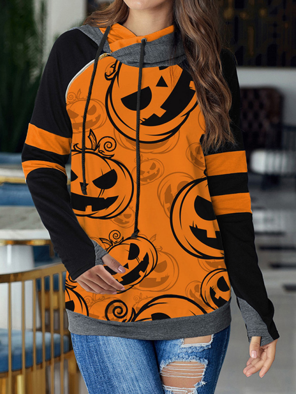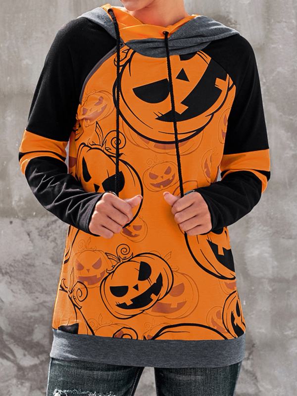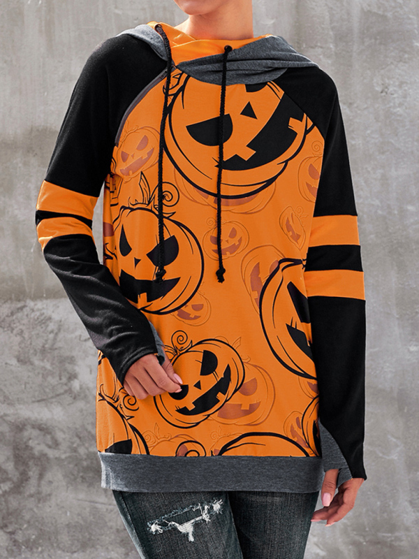 Women's Halloween Print Contrast Raglan Sleeve Top