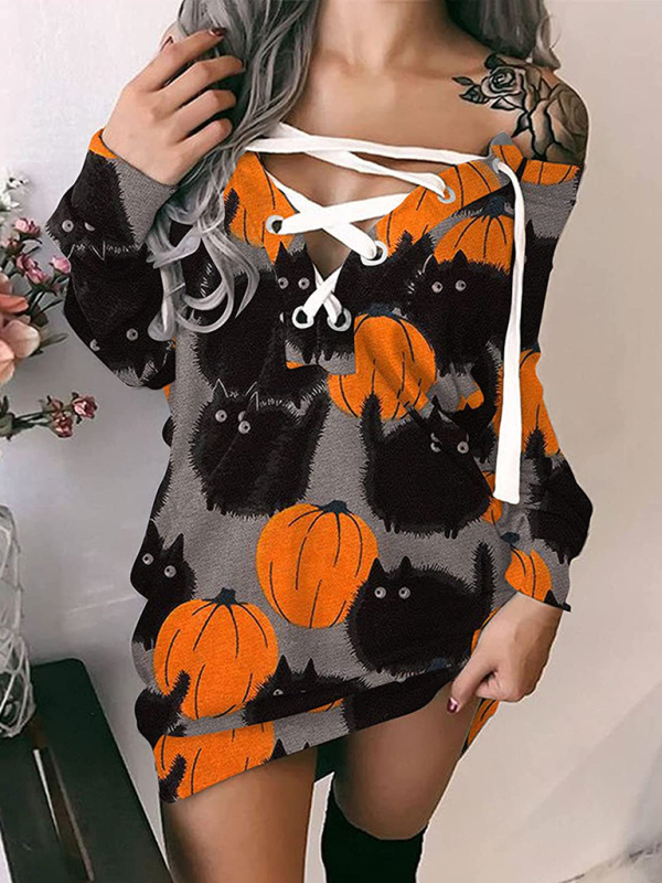 Women's Halloween V-neck strapless loose long-sleeved dress