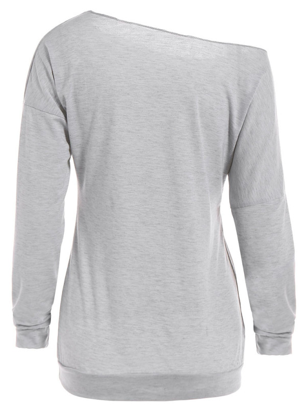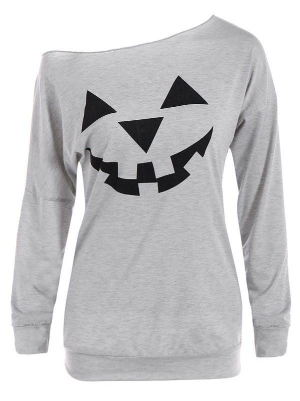Women's printed pumpkin T-shirt Halloween long sleeve diagonal shoulder top