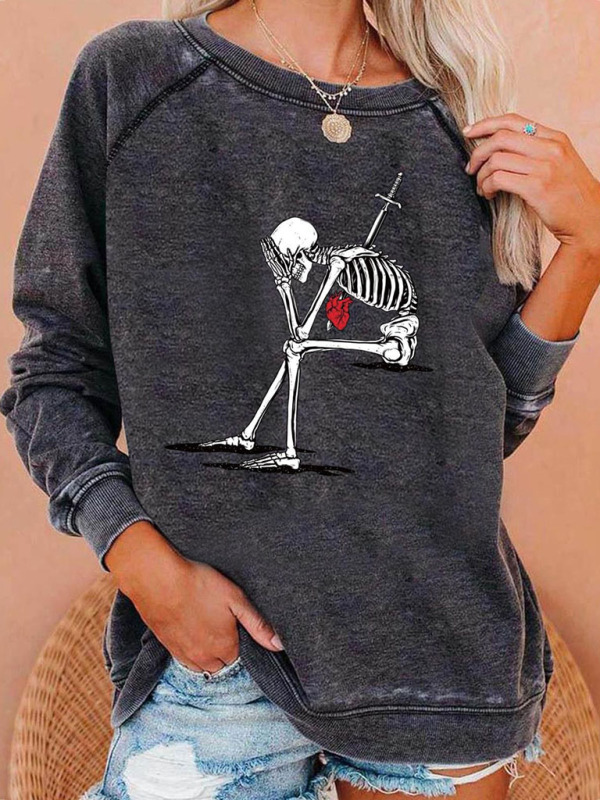 Women's Raglan Sleeve Loose Halloween Themed Print Top