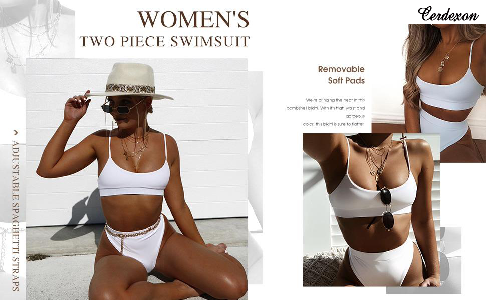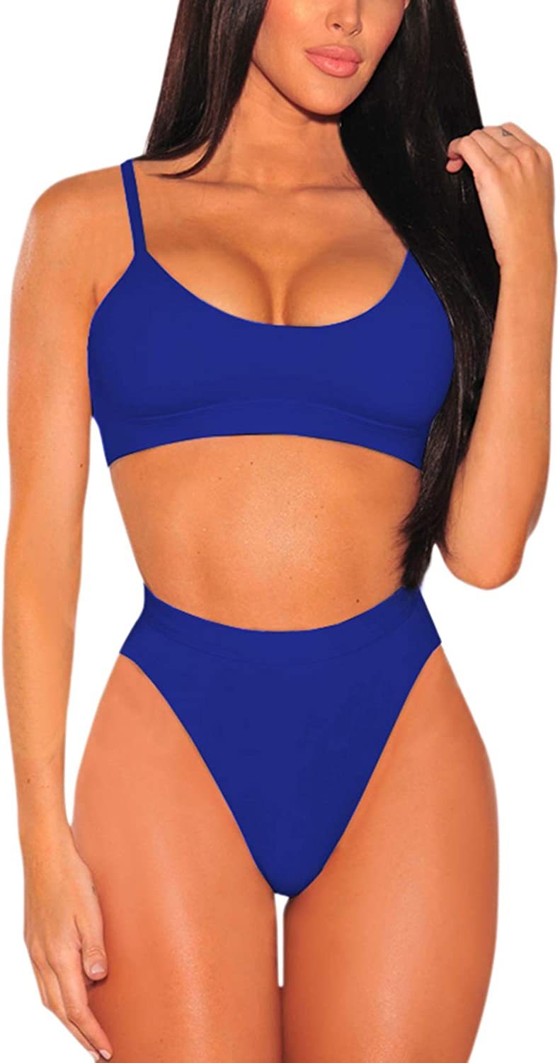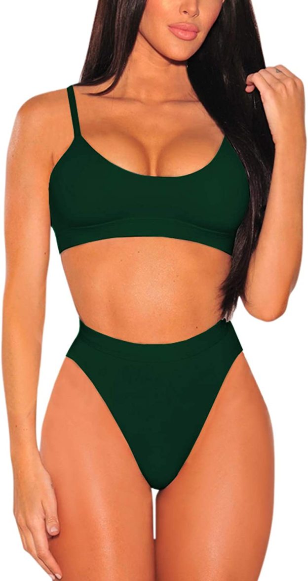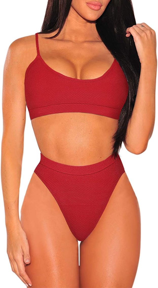• Cerdexon Women's Two Piece Scoop Neck High Waisted High Cut Bikini Set Bathing Suit