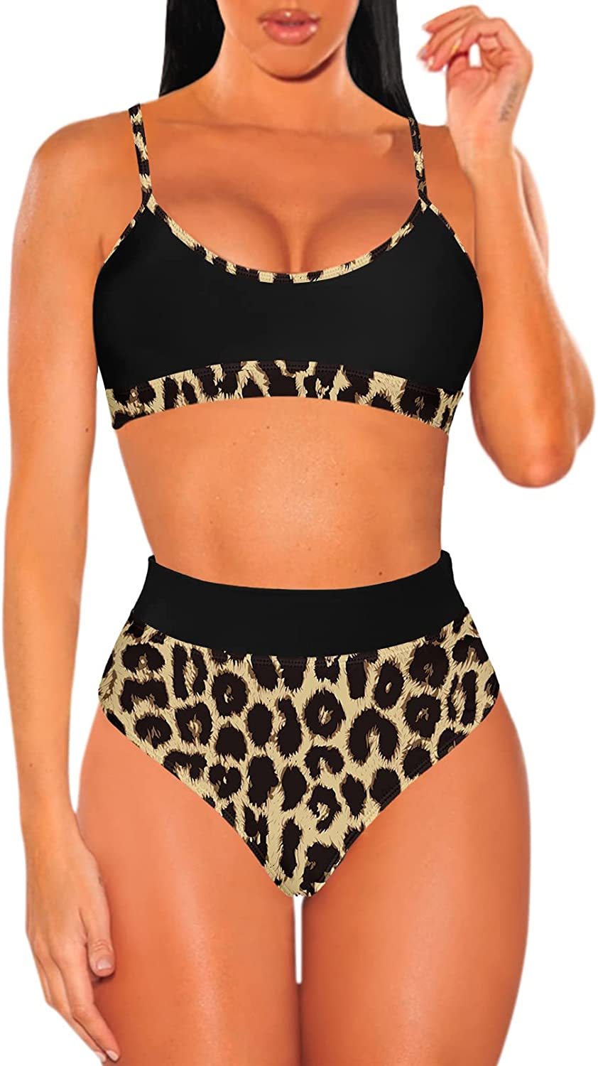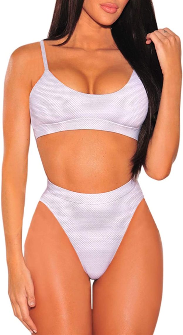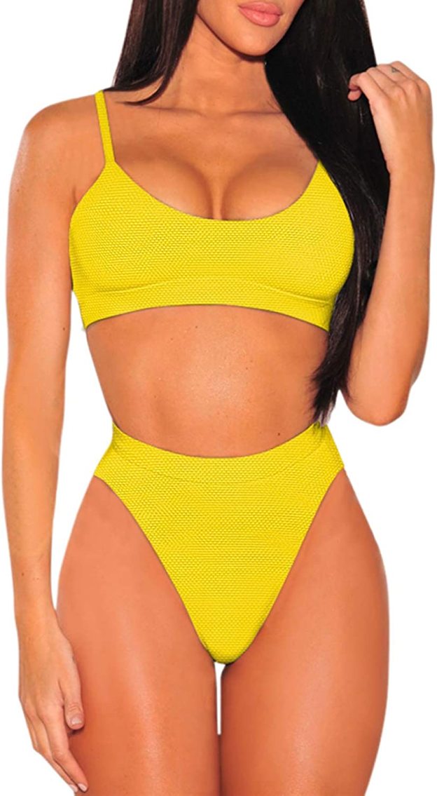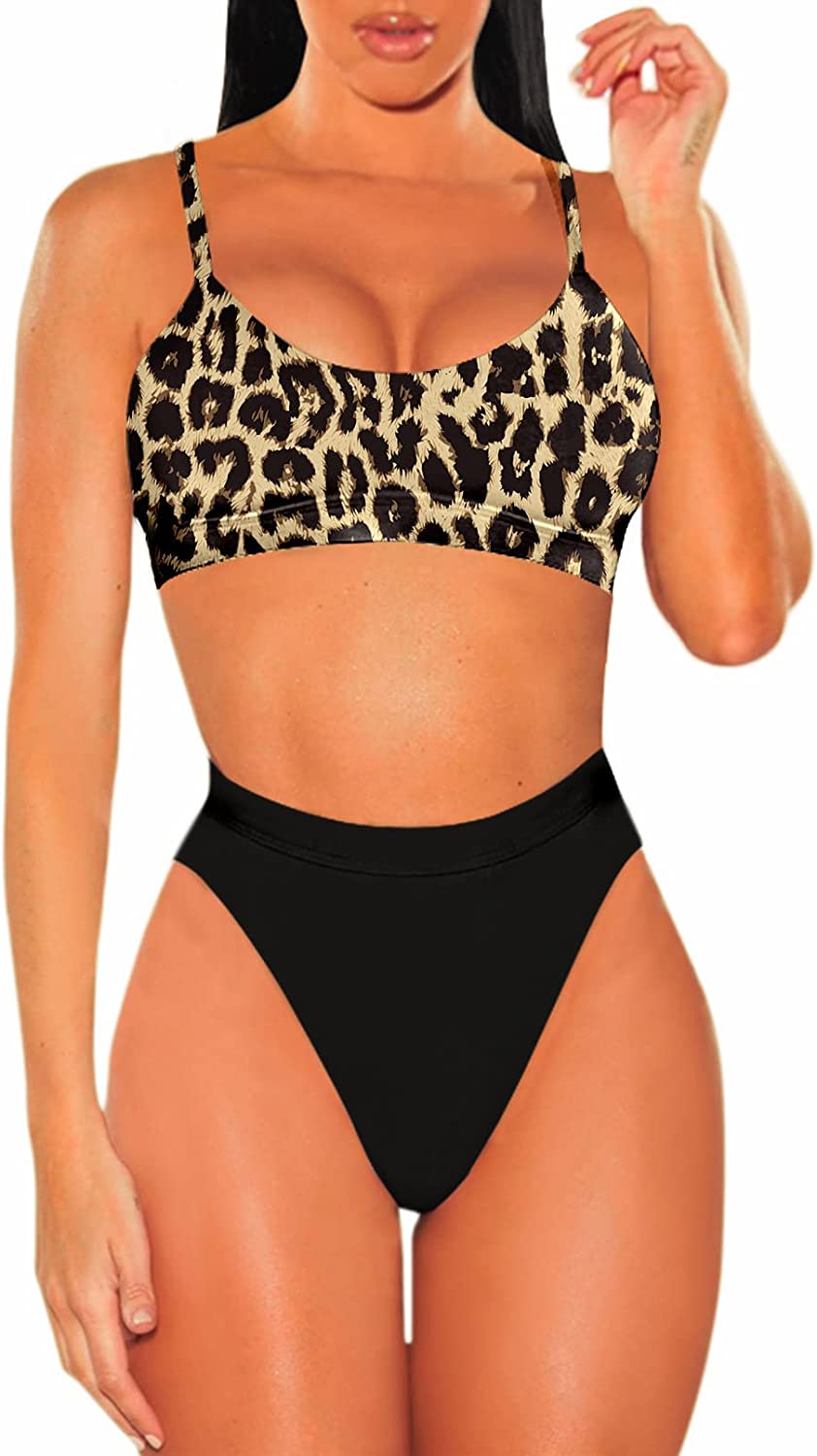 • Cerdexon Women's Two Piece Scoop Neck High Waisted High Cut Bikini Set Bathing Suit