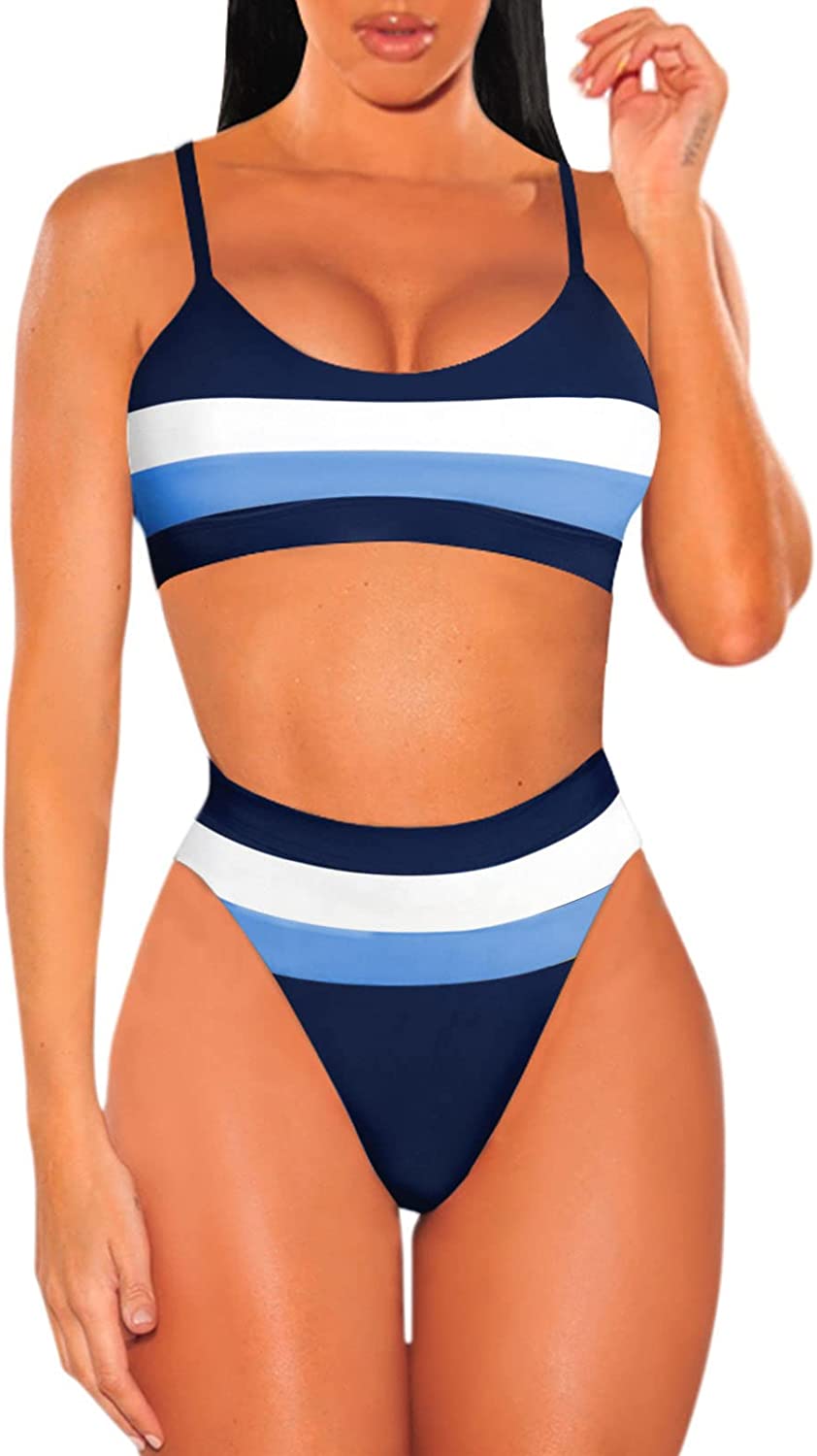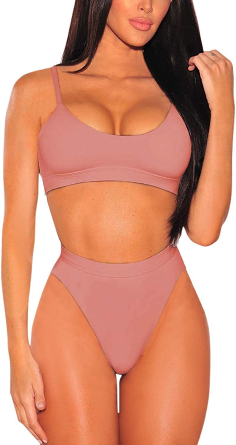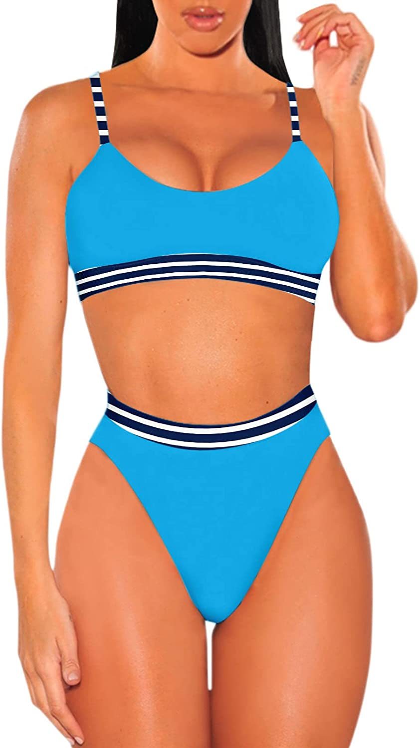 Women's Padded High Waisted High Cut Cheeky Two Piece Bathing Suit