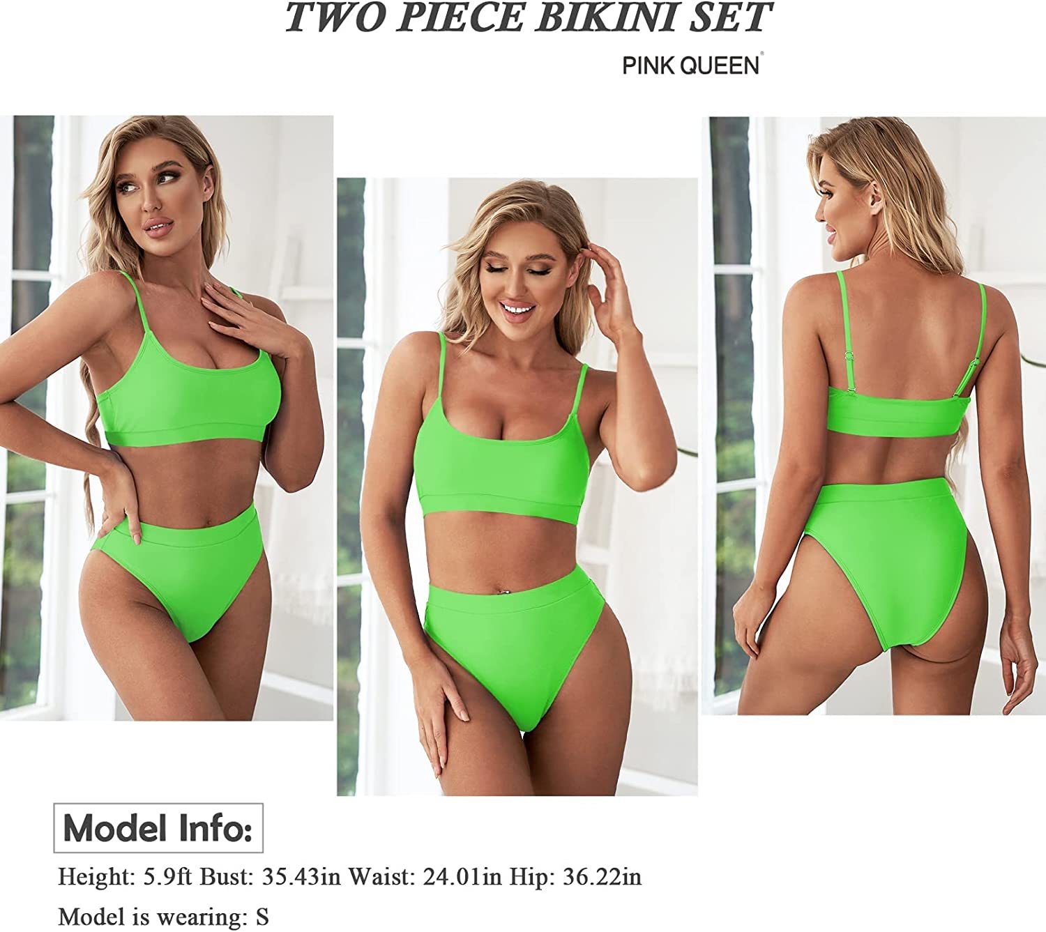 Women's Push Up Pad High Cut High Waisted Cheeky Two Piece Swimsuit