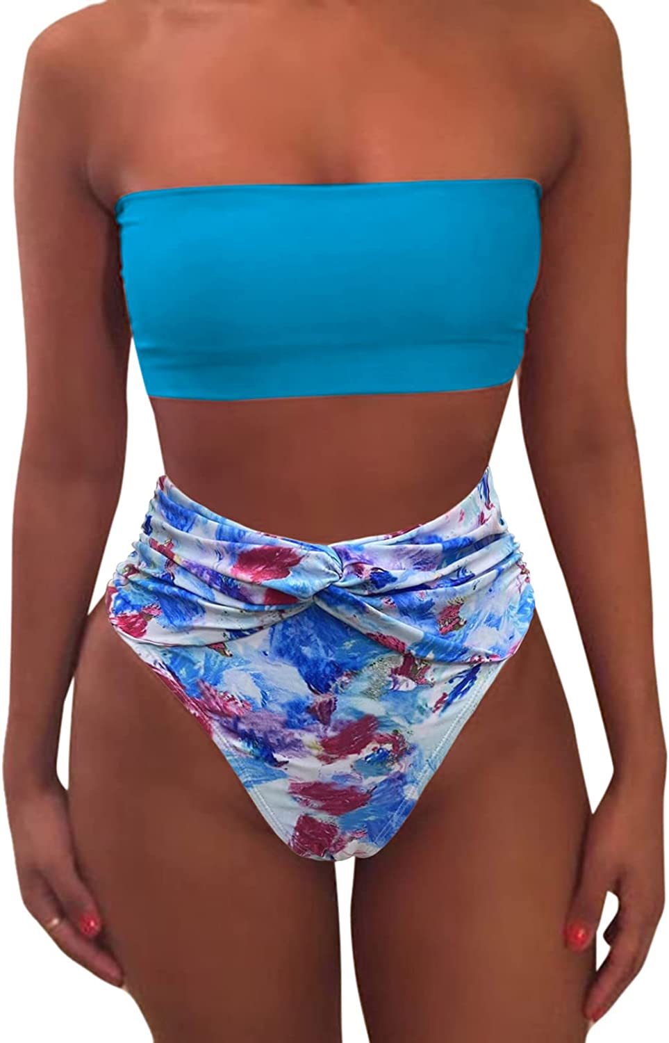 Women's Removable Strap Wrap Pad Cheeky High Waist Bikini Set Swimsuit