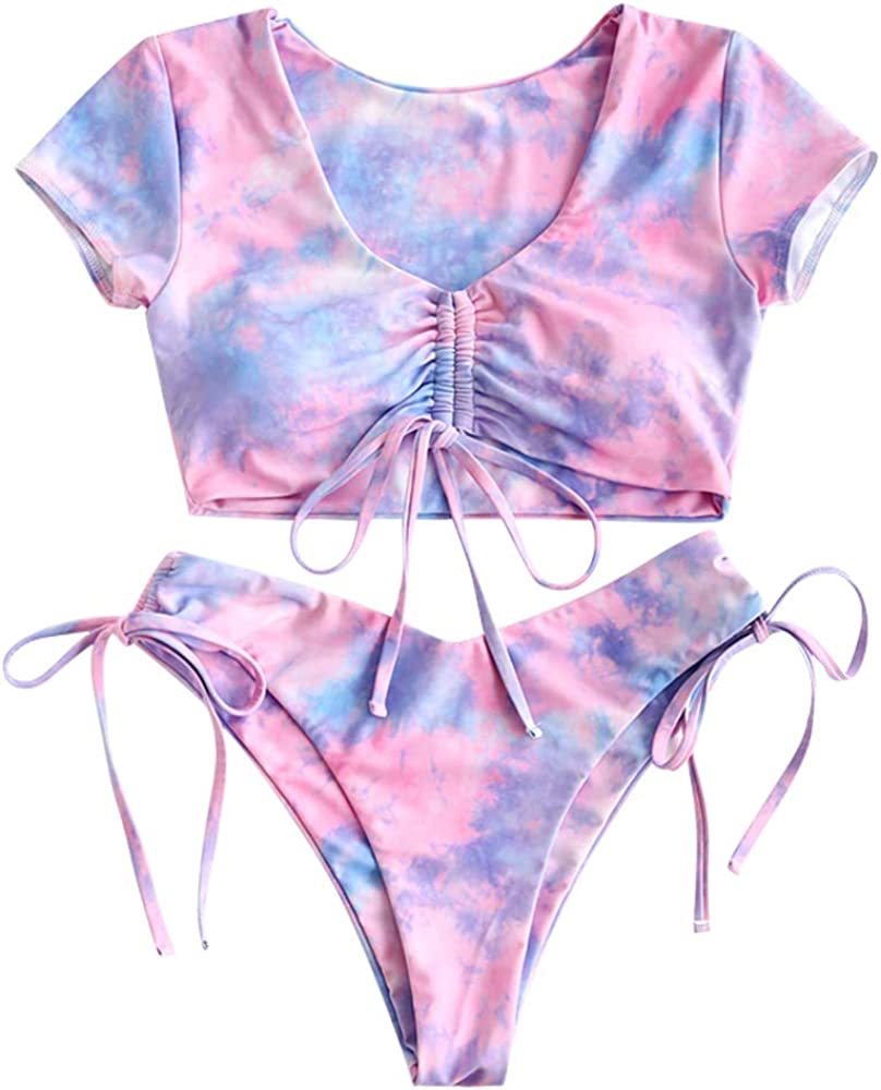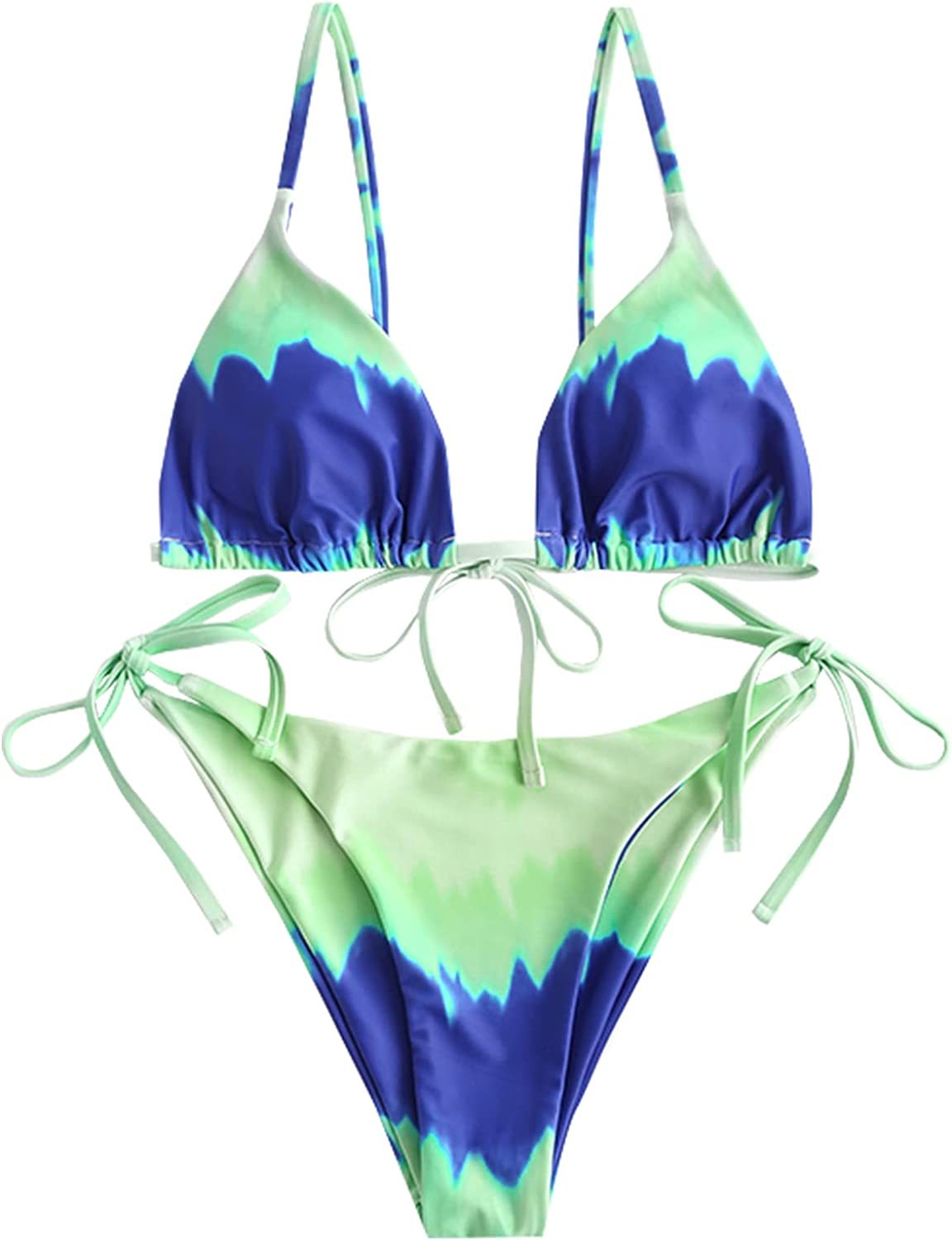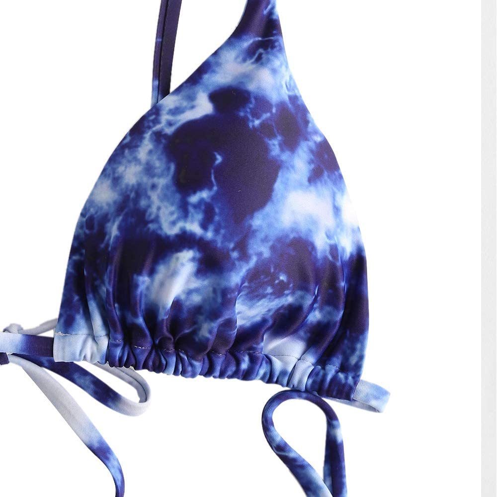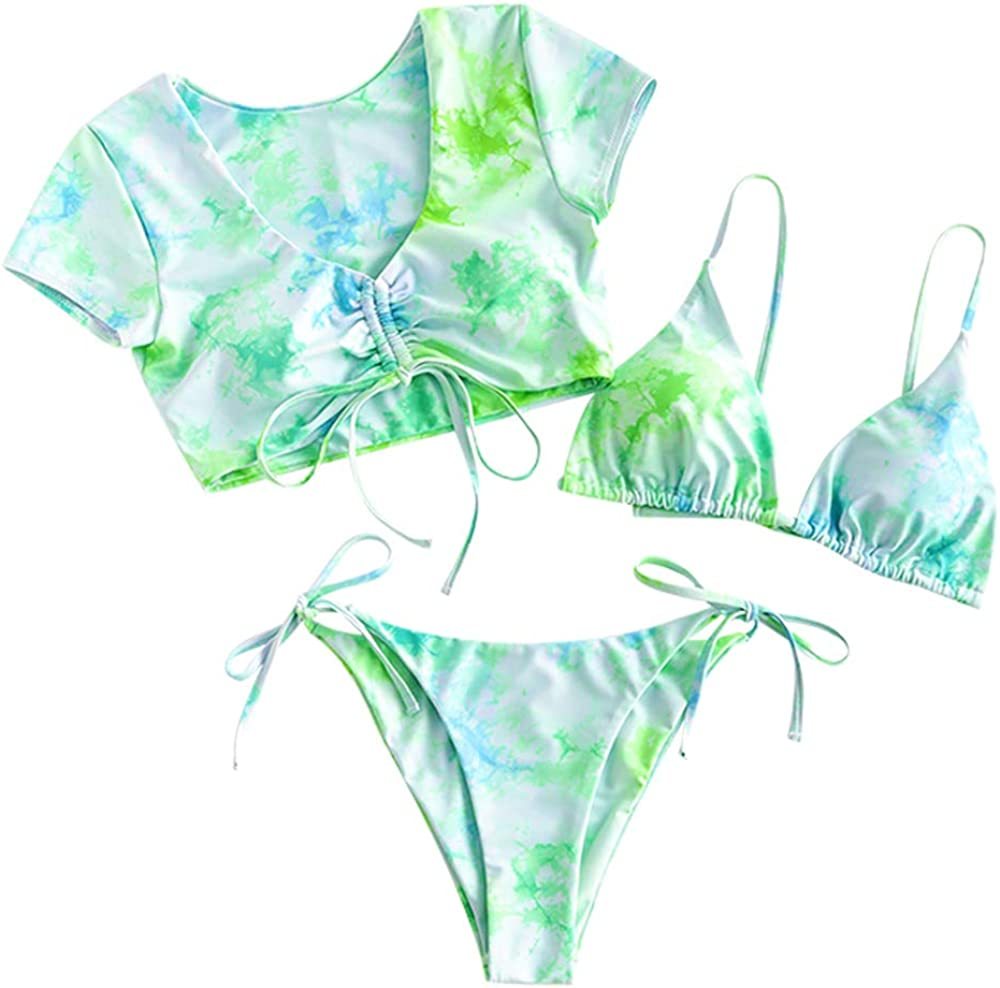 Women's Tie Dye Cinched String Triangle Bikini Set Three Piece Swimsuit