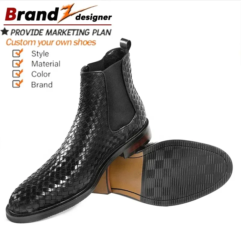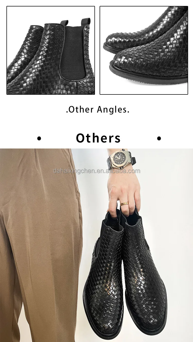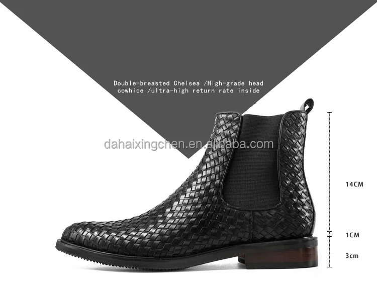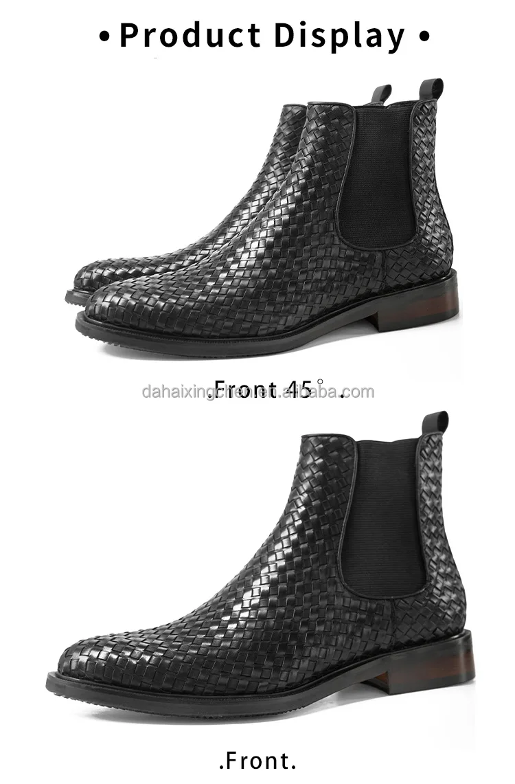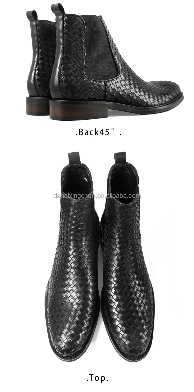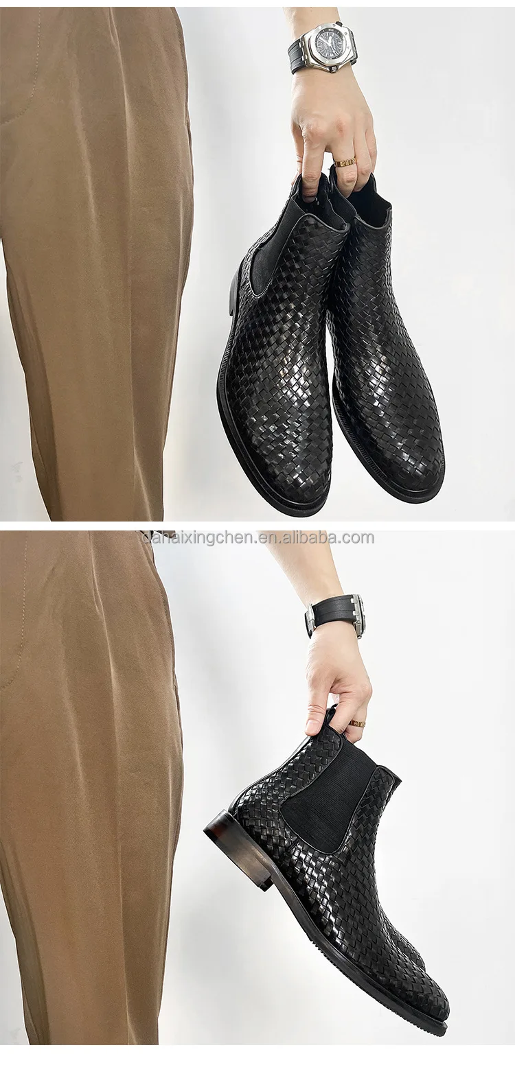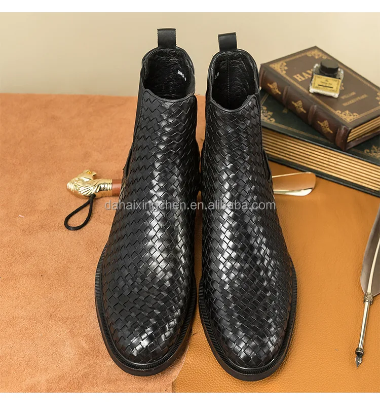 New cowhide handmade woven Chelsea short dress shoes oxfords leather boots casual leather shoes