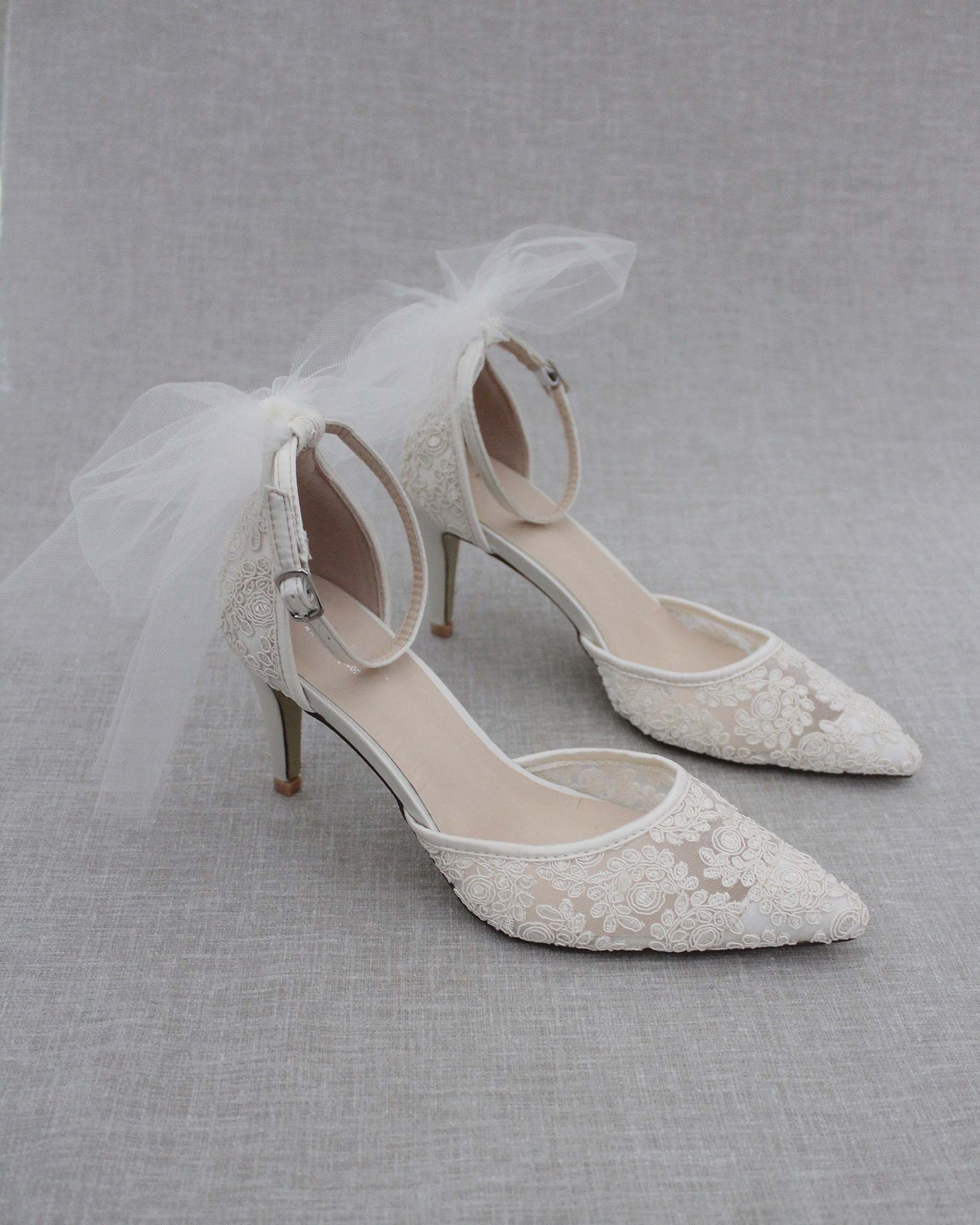 Lace Wedding Heels with Tulle Bow