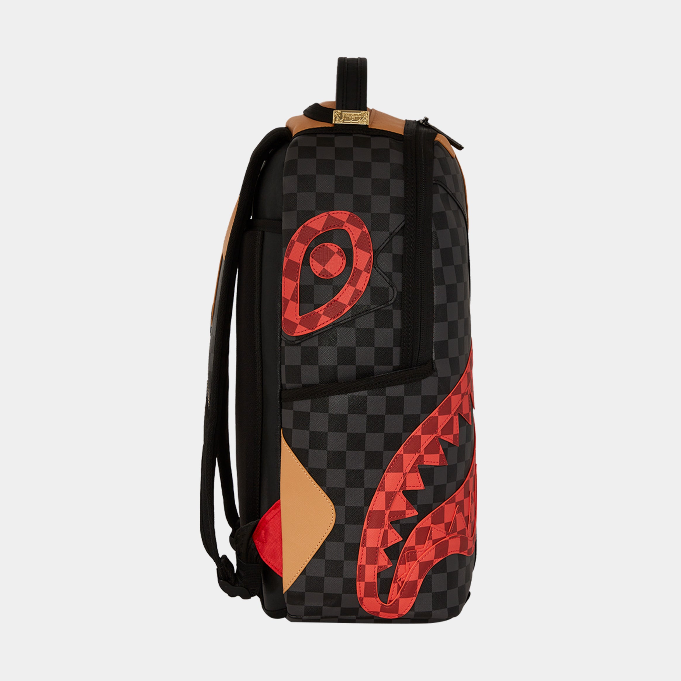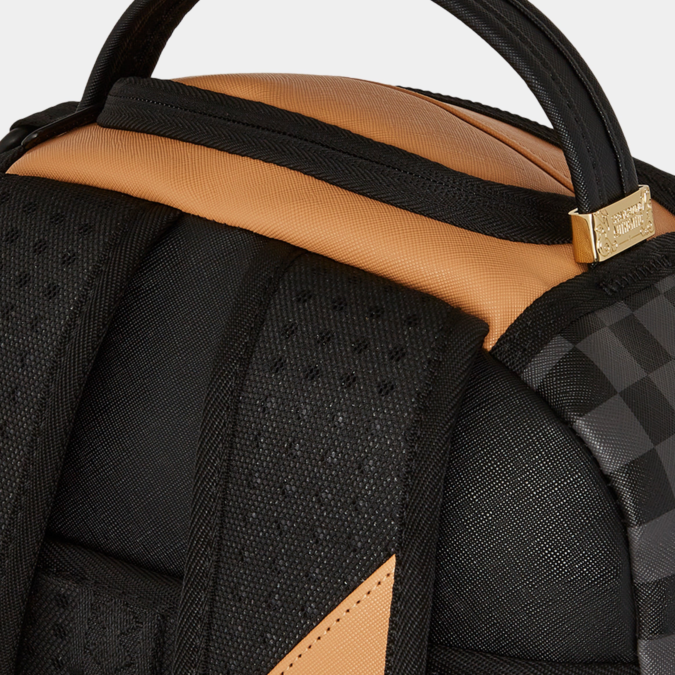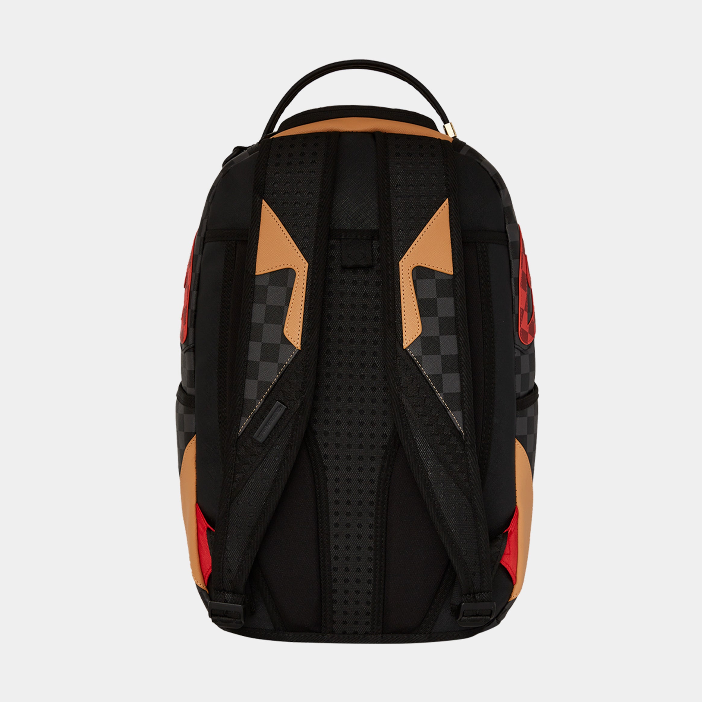 Dimensions: 18" x 6" x 11.5" • Front zipper pocket • Side pockets • Zippered Stash pocket • Separate velour sunglass compartment • Ergonomic mesh back padding • Adjustable Straps for custom sizing • Gold zippers with metal hardware • Metal "Sprayground Authentic" badge • Slide through back sleeve connects to carry-on luggage to free your hands
