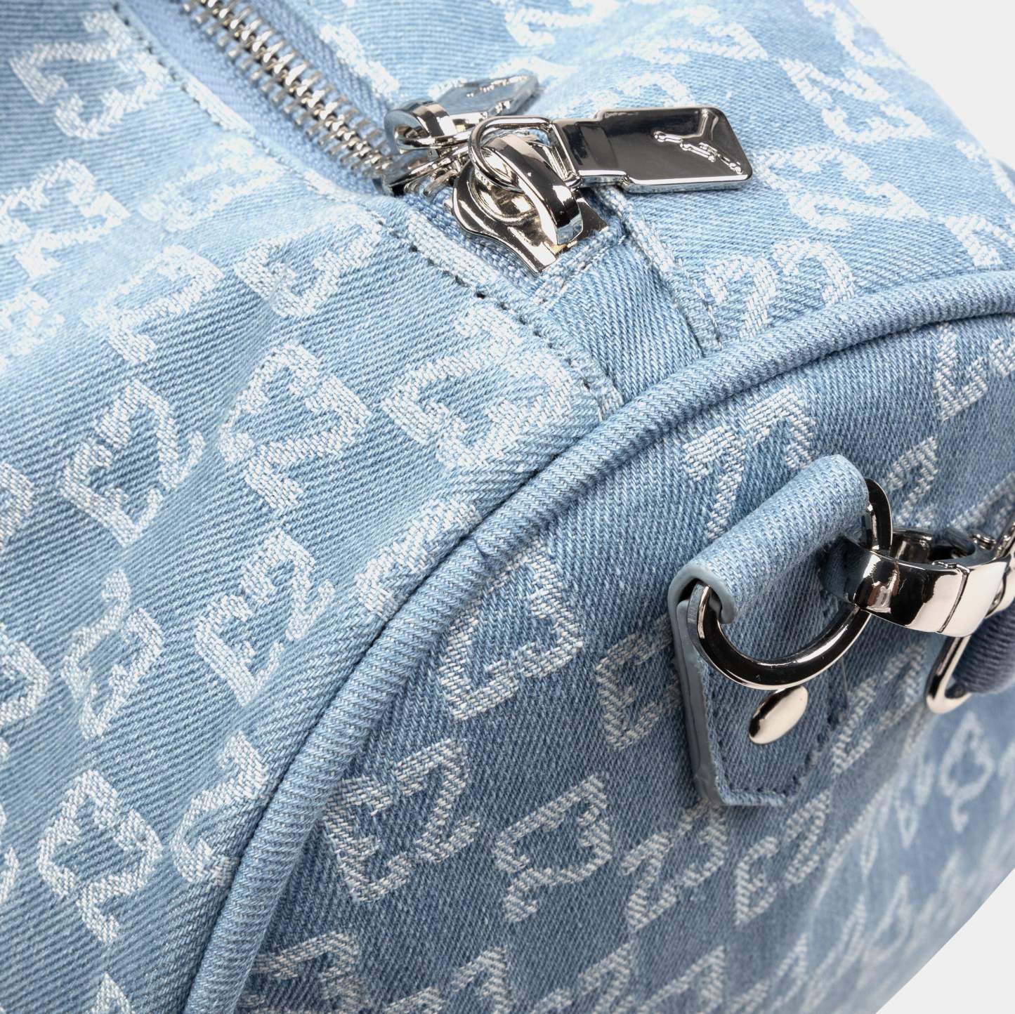 Travel like a baller with this fashionable duffel, made of durable, cotton denim finished with an allover woven monogram pattern. The spacious main compartment has an interior zip pocket to secure smaller items you want quick and easy access to, while the handles and adjustable, removable strap provide versatile wear and carry options.