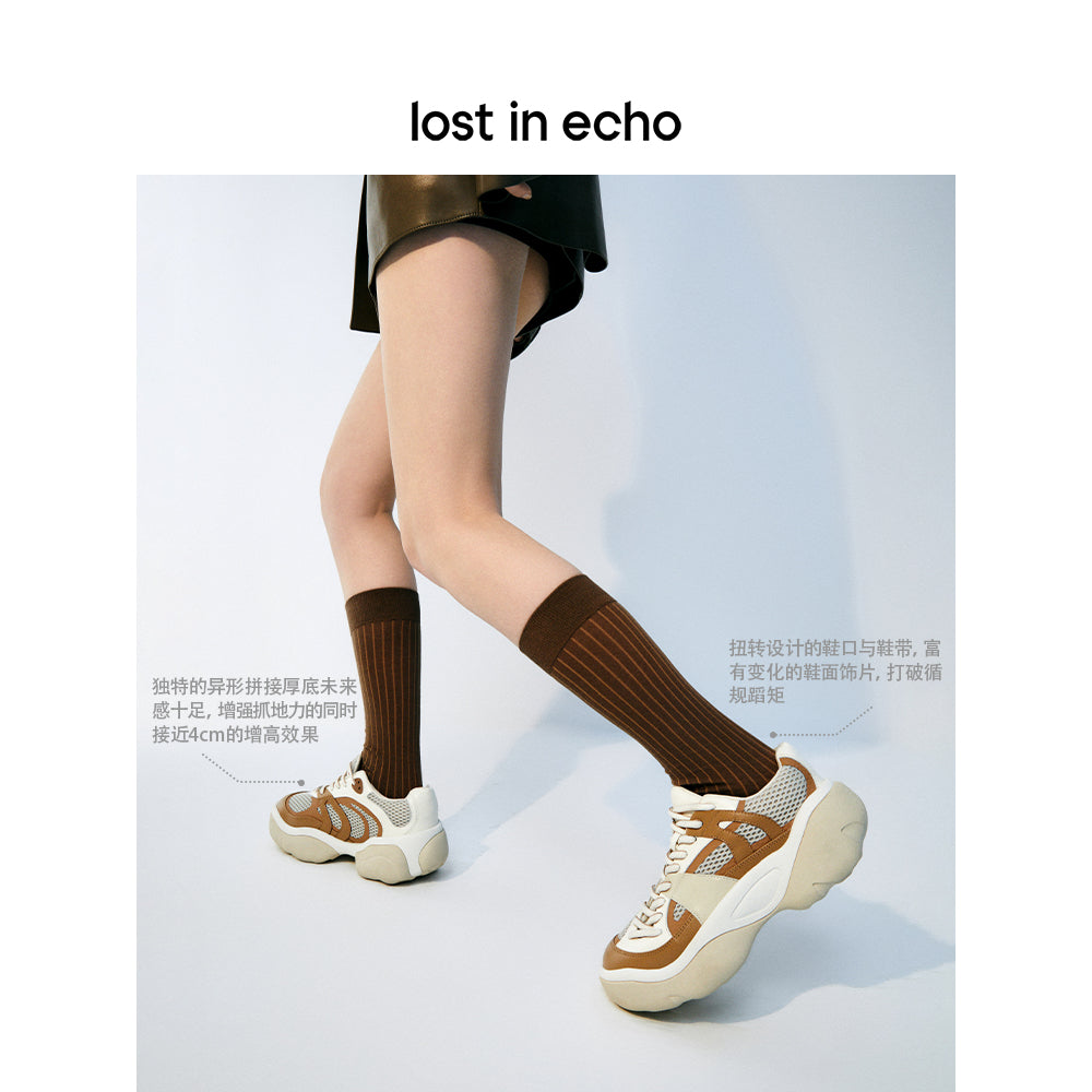 Lost In Echo Twist Upper Thick Sole Casual Retro Sneaker Khaki